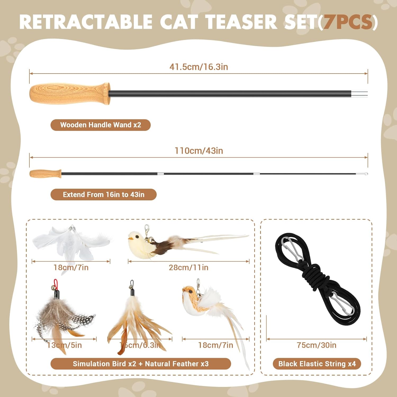 • Играчка за риболов на котка с иновативен дизайн от 3 части: въдицата се разтяга до впечатляващите 107 см и дава на котката достатъчно пространство да тича и скача с радост. След игра играчките удобно се прибират до 16 инча за лесно съхранение.