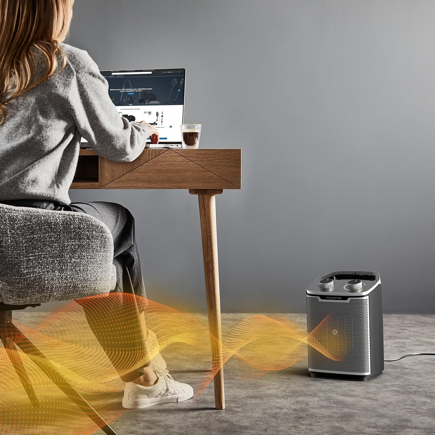 Rowenta Intense Comfort + SO9330F0 вентилаторен нагревател, 2 нива на мощност, керамична технология, компактни размери, термостат, ултра тих, дръжка за носене, черен