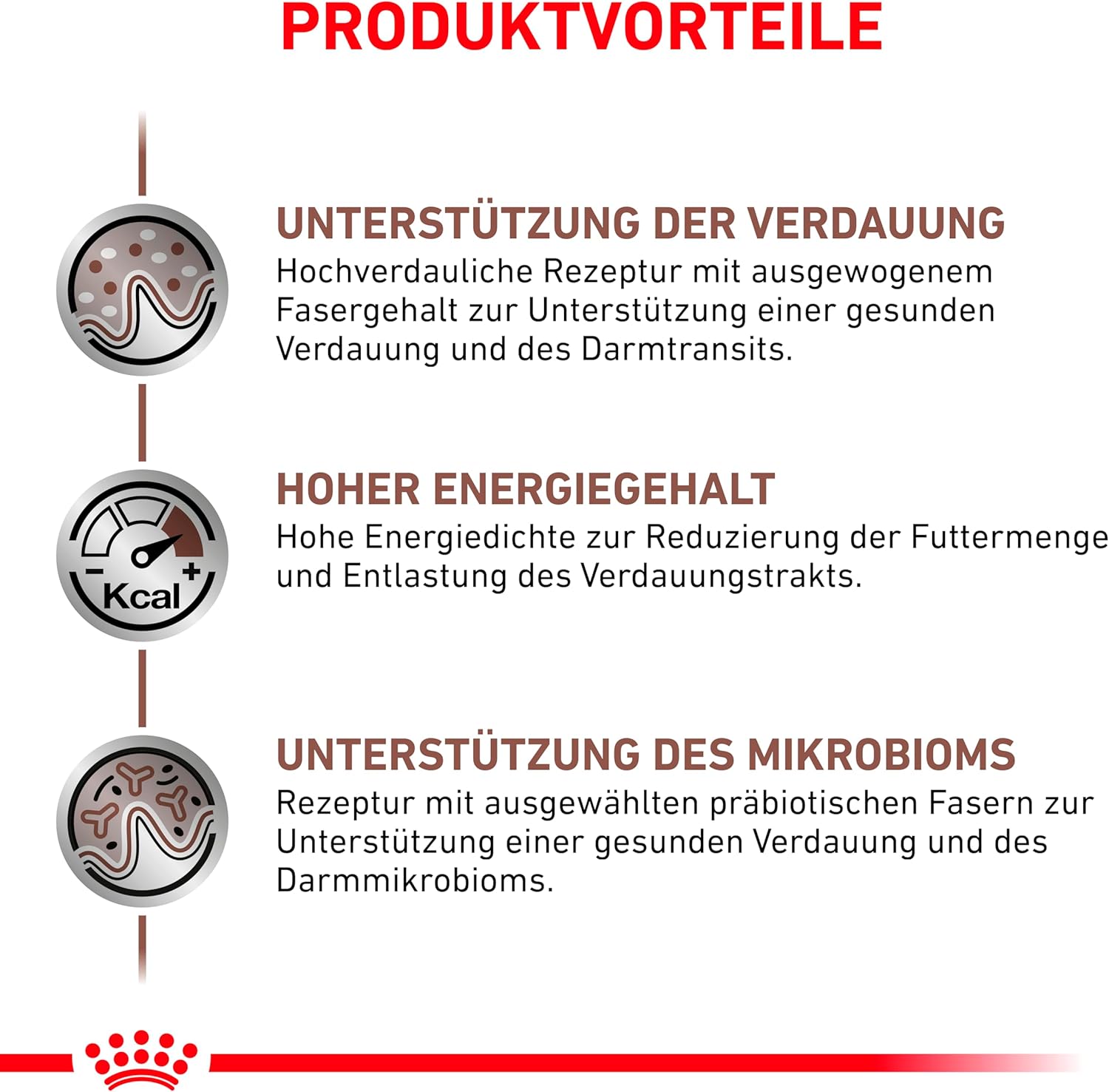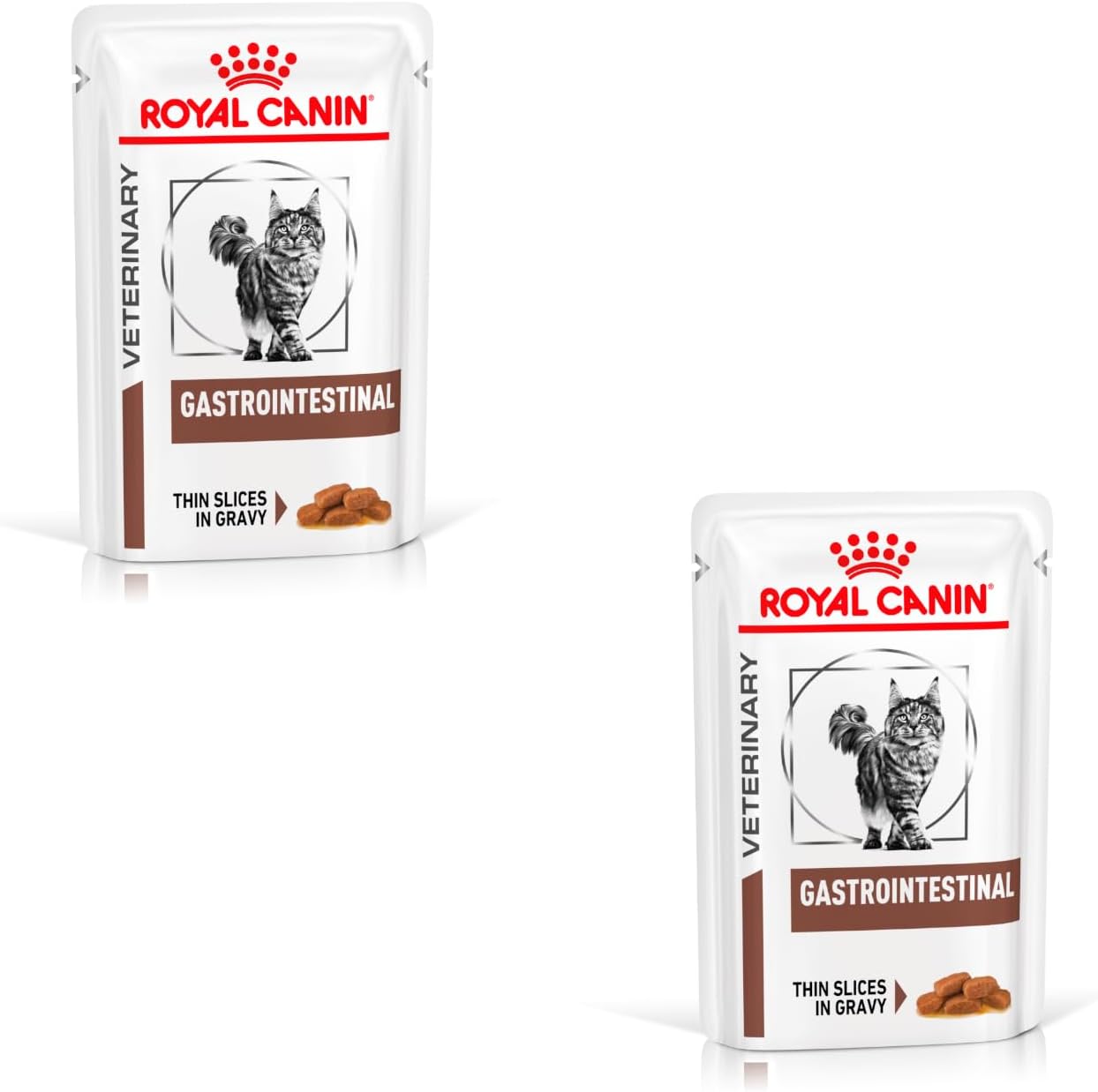 ROYAL CANIN GASTROINTESTINAL Fine Chunks in Gravy е пълноценна диетична храна за котки, която може да помогне за облекчаване на остра чревна малабсорбция и да подпомогне наддаването на тегло по време на възстановяване. Съдържа лесно смилаеми съставки, повишено съдържание на електролити и висока концентрация на основни хранителни вещества. Също така е с високо съдържание на енергия. ПРЕПОРЪКИ: Препоръчително е да се консултирате с ветеринарен лекар преди употреба. Хранете с GASTROINTESTINAL Fine Chunks in Gravy поне 1 до 2 седмици по време и след остра диария или до пълно възстановяване. Осигурявайте прясна вода през цялото време.