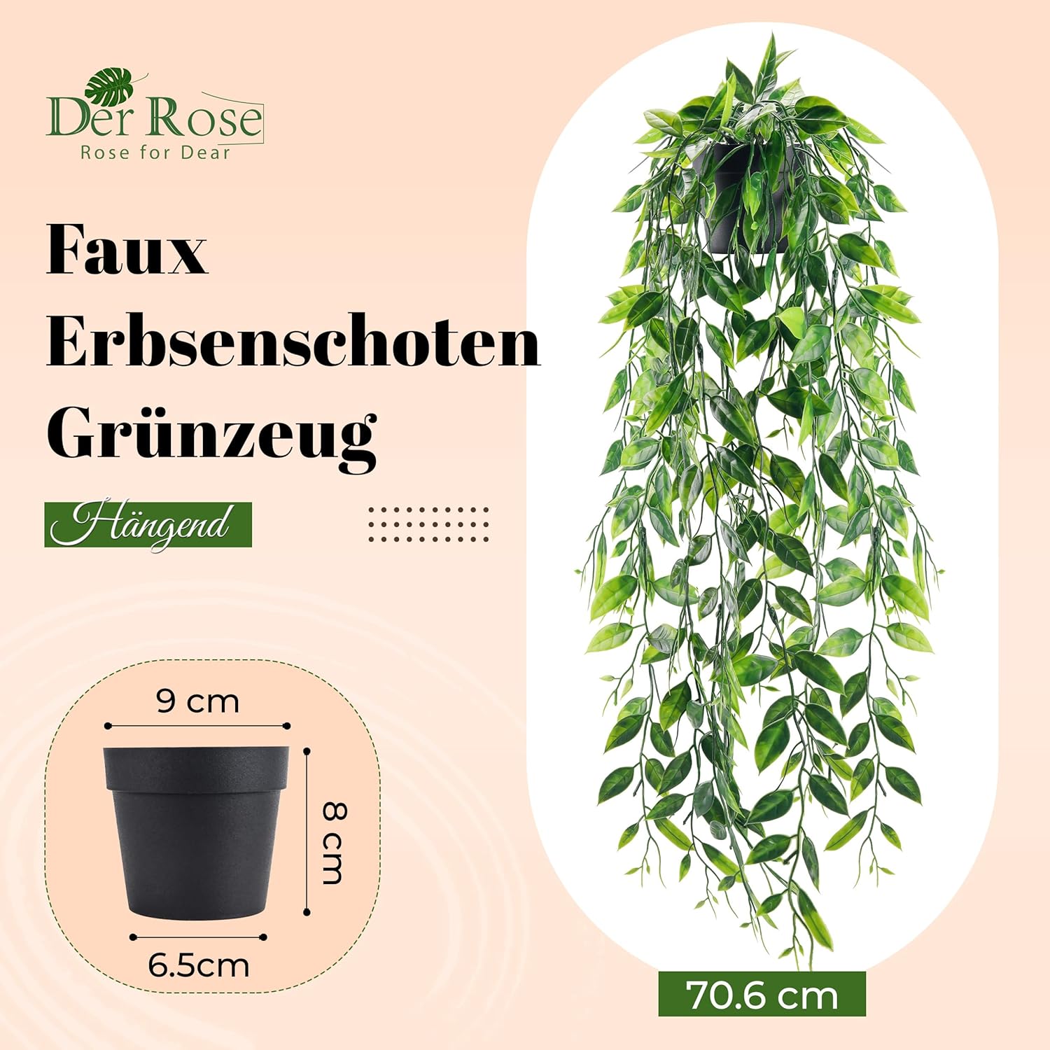 • Отличен размер и опаковка: Нашето изкуствено висящо растение (грахова черупка) е с изящен дизайн. Размерът на всяка висяща зеленина е 27,6 инча, височината на черната саксия е 3,15 инча, а ширината е 2,56 инча.