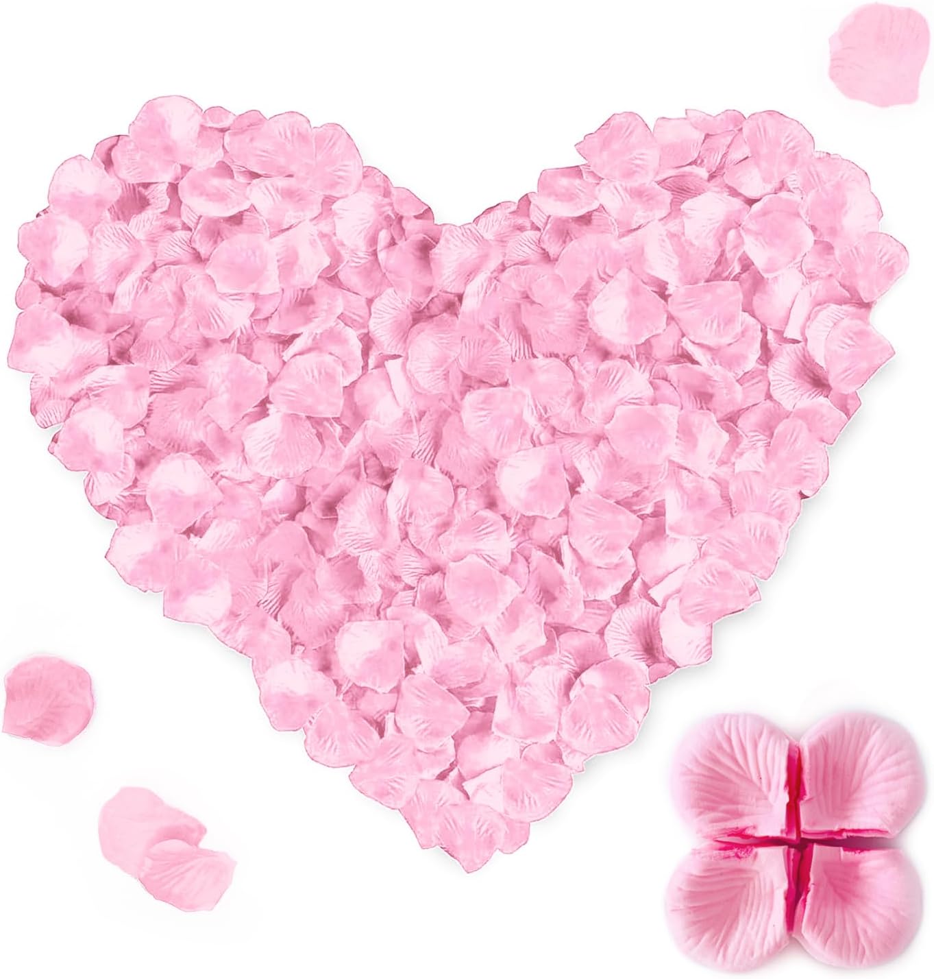 Изкуствените розови листенца добавят стилен и елегантен щрих, който подобрява цялостното настроение.