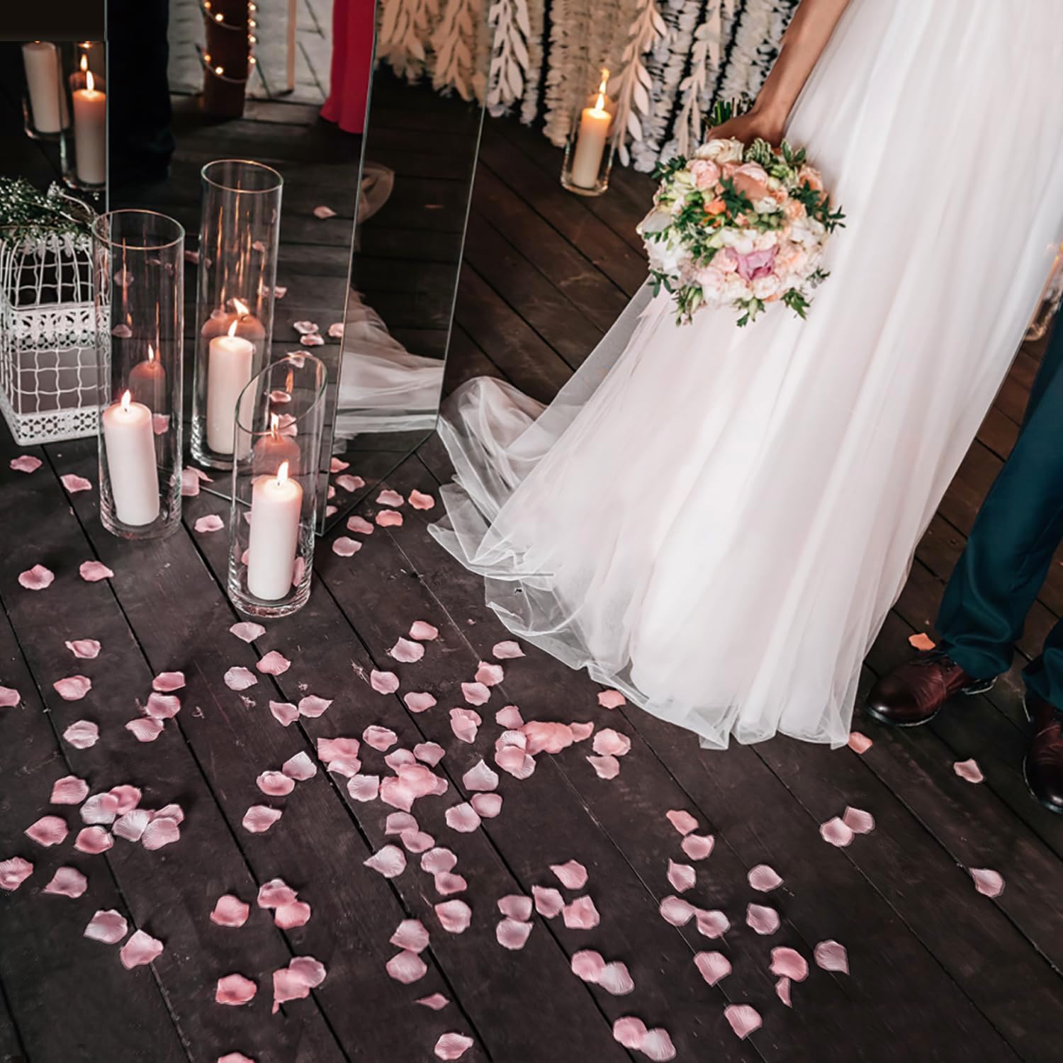 Изкуствените розови листенца добавят стилен и елегантен щрих, който подобрява цялостното настроение.