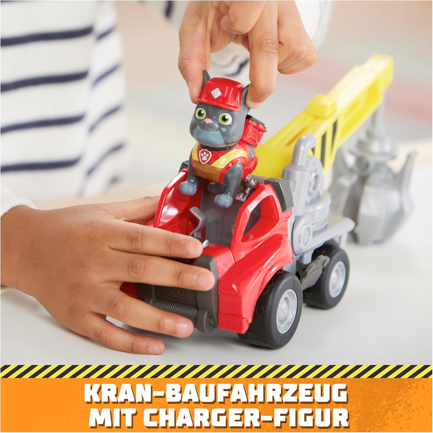 • Автентична строителна машина с кран Rubble & Crew: освен работни колела, строителната машина с кран Chargers има въртяща се и разтегателна стрела, която ѝ позволява да повдига и поставя всичко на строителната площадка.