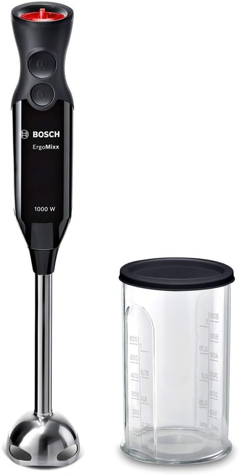Ръчният блендер ErgoMaster, с мощния си 1000-ватов мотор, винаги осигурява перфектно пасиране. Той ви позволява да се справите с всяка задача за пюриране, нарязване, смесване или месене, дори с най-твърдите съставки.