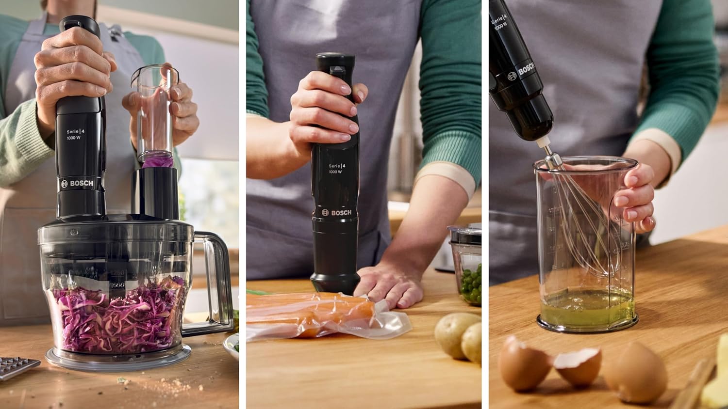 Ръчният блендер ErgoMaster Series 4 е изключително лесен за употреба. Скоростта се регулира плавно чрез натискане на лоста за управление. А благодарение на мощния си 1000-ватов мотор, той предлага изключителна производителност при пасиране.