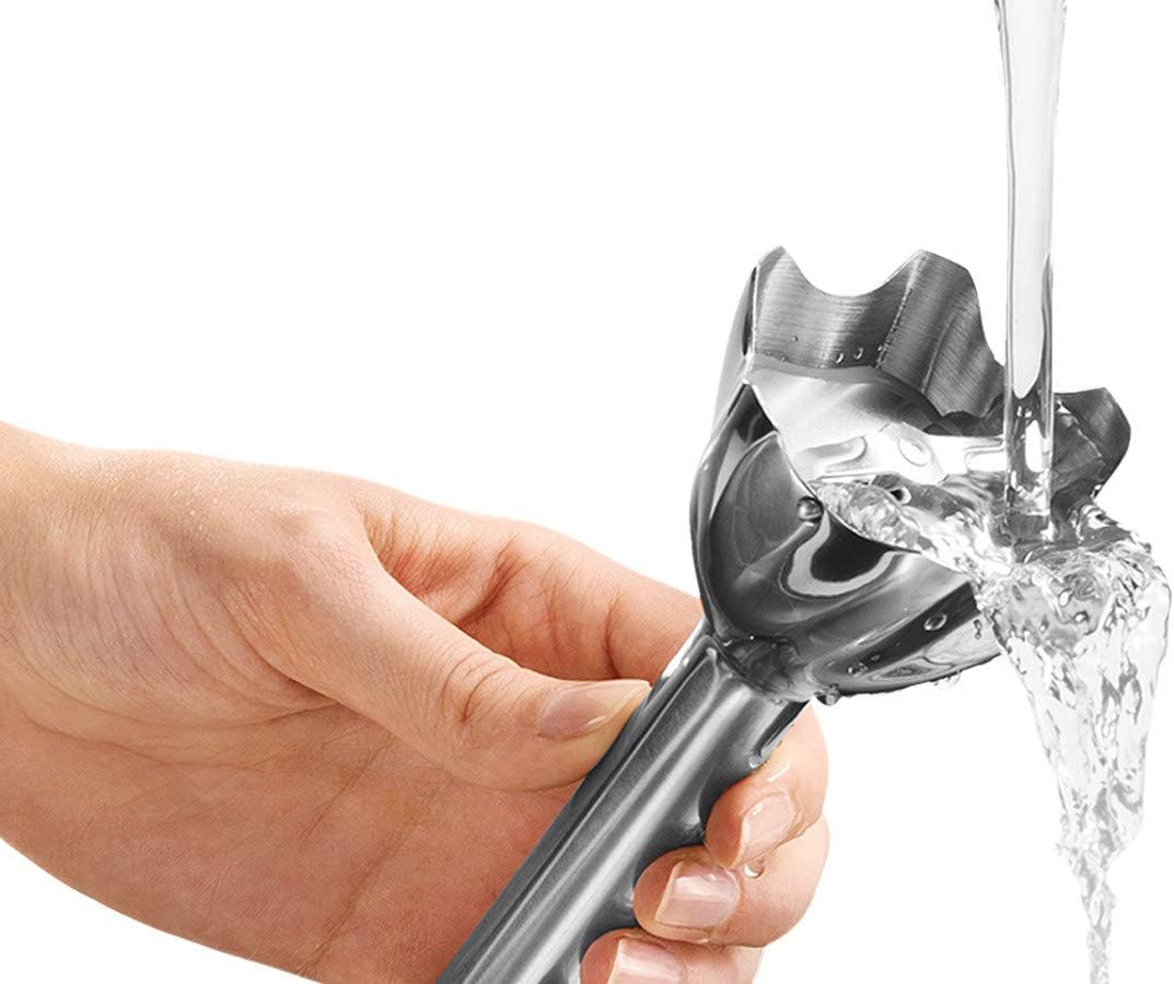 • Технология за контрол на пръските: пюрето стои идеално в ръката и освен това има практичен дизайн против пръски, който обещава чиста кухня без досадно почистване след кухненска работа.