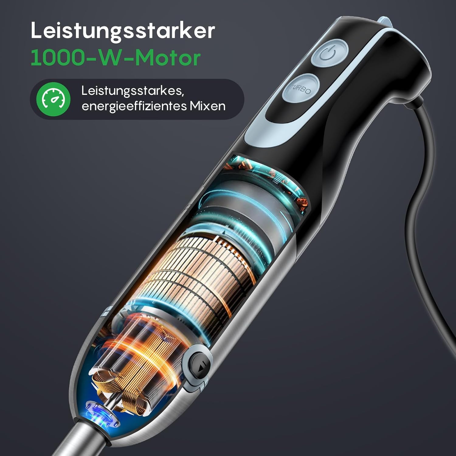 • Мощен 1000W мотор: ефикасно, дълготрайно смесване, което върши работата бързо
