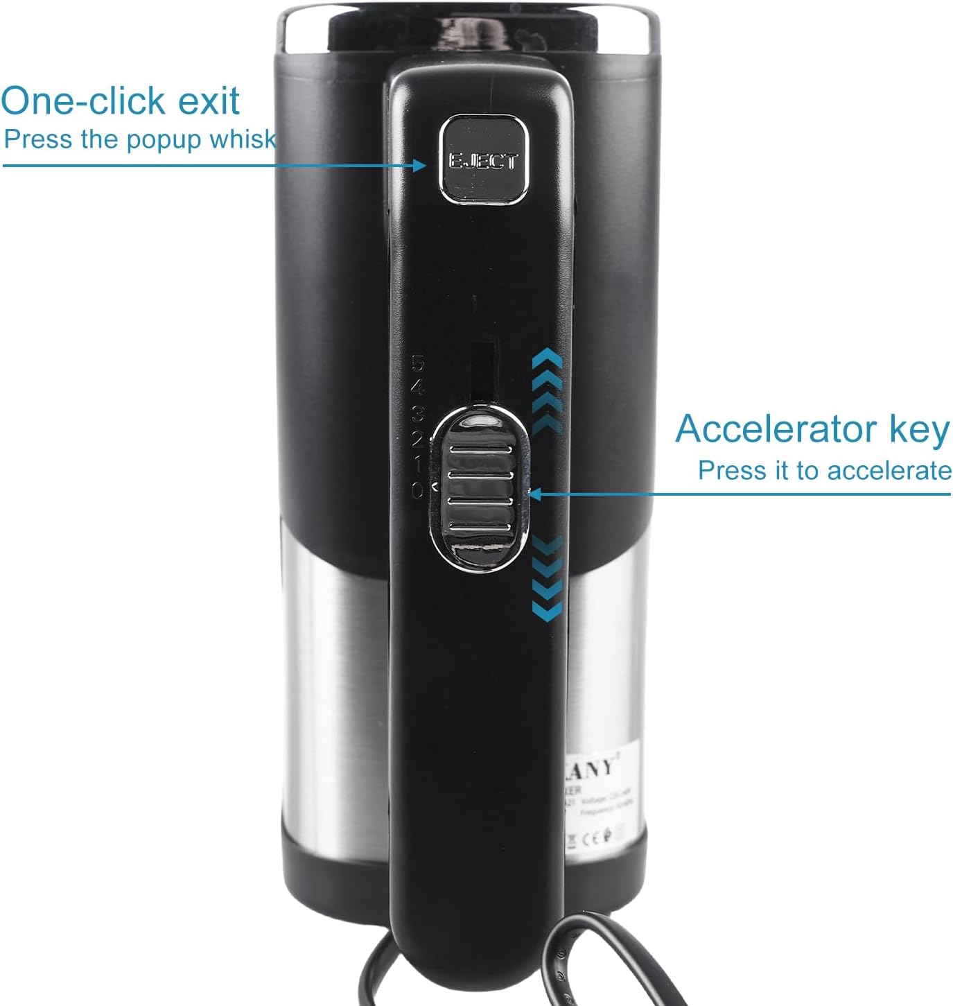 Behogan Handmixer: 800W Elektrisch Handrührgerät, 7 Geschwindigkeiten, Mixer Handrührer mit 4*Edelstahl Zubehör, Rührgerät Handmixer, Edelstahlkneter Handmixer, Handrührer, Küchenmixer, Schwarz