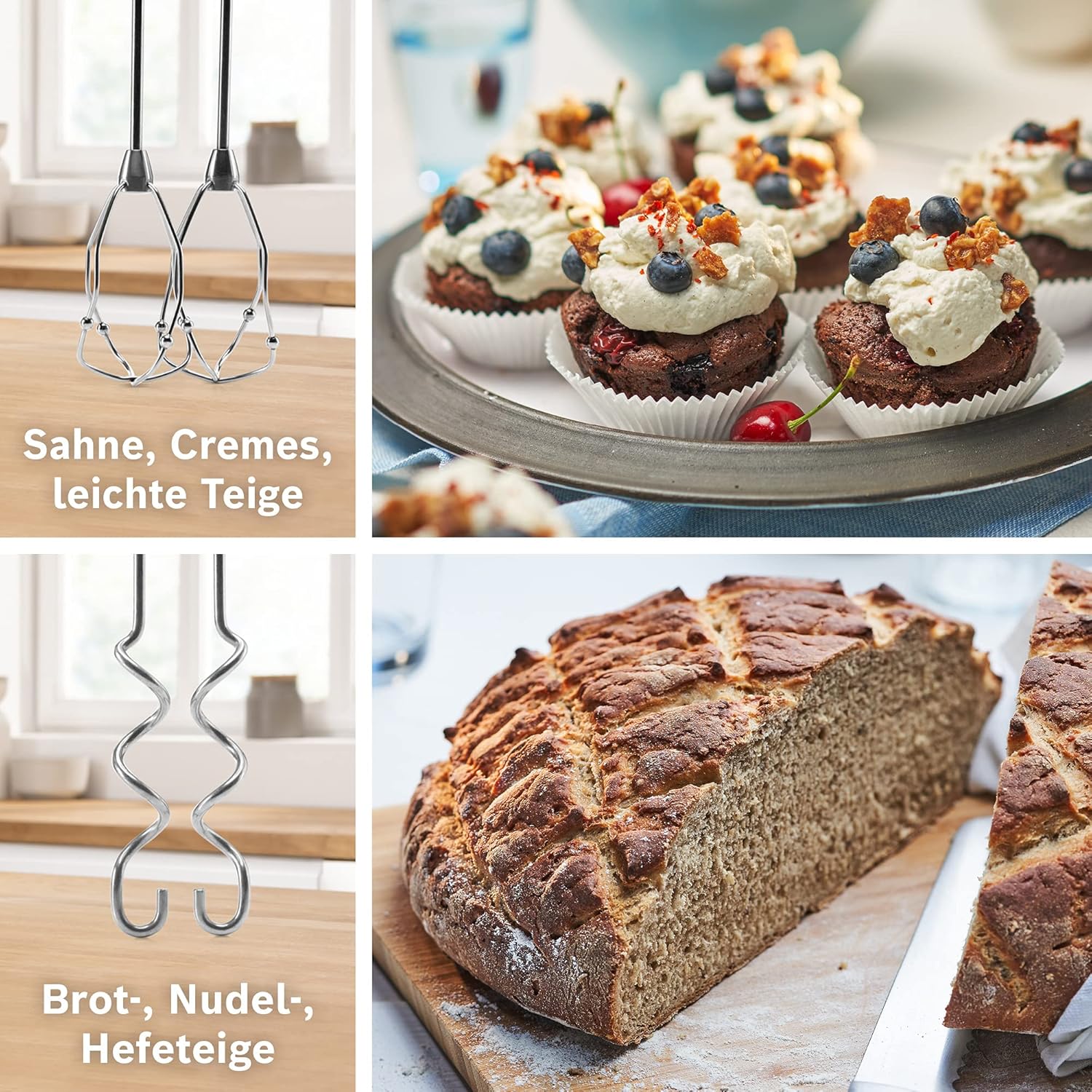 • Два чифта фини метли за сметана, изработени от неръждаема стомана, за оптимални резултати при разбиване и бъркане, за бърза смяна на метлите без необходимост от изплакване.