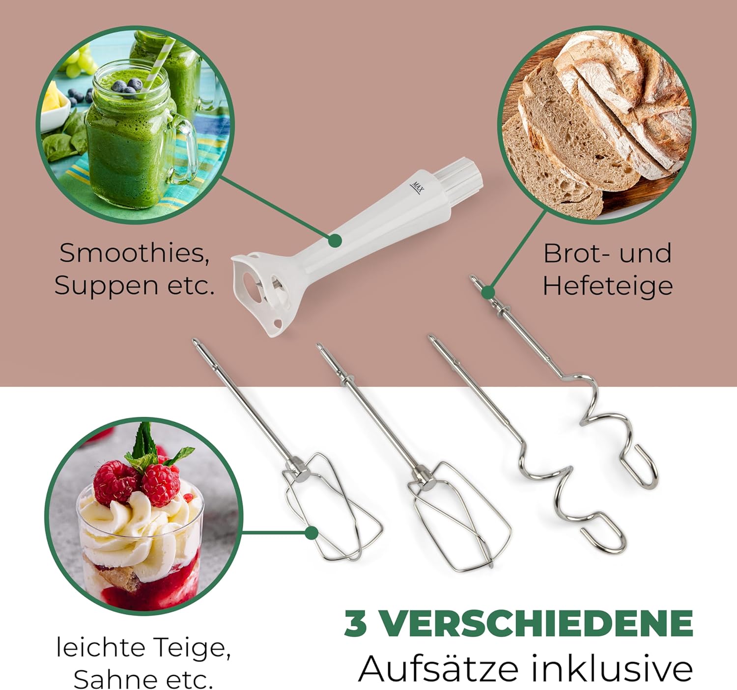 • С електрическия ръчен миксер можете да изпитате кухненската радост в най-красивата ѝ форма - универсален инструмент за всяко кулинарно творение, независимо дали става въпрос за смесване, разбъркване или месене - само с едно устройство.