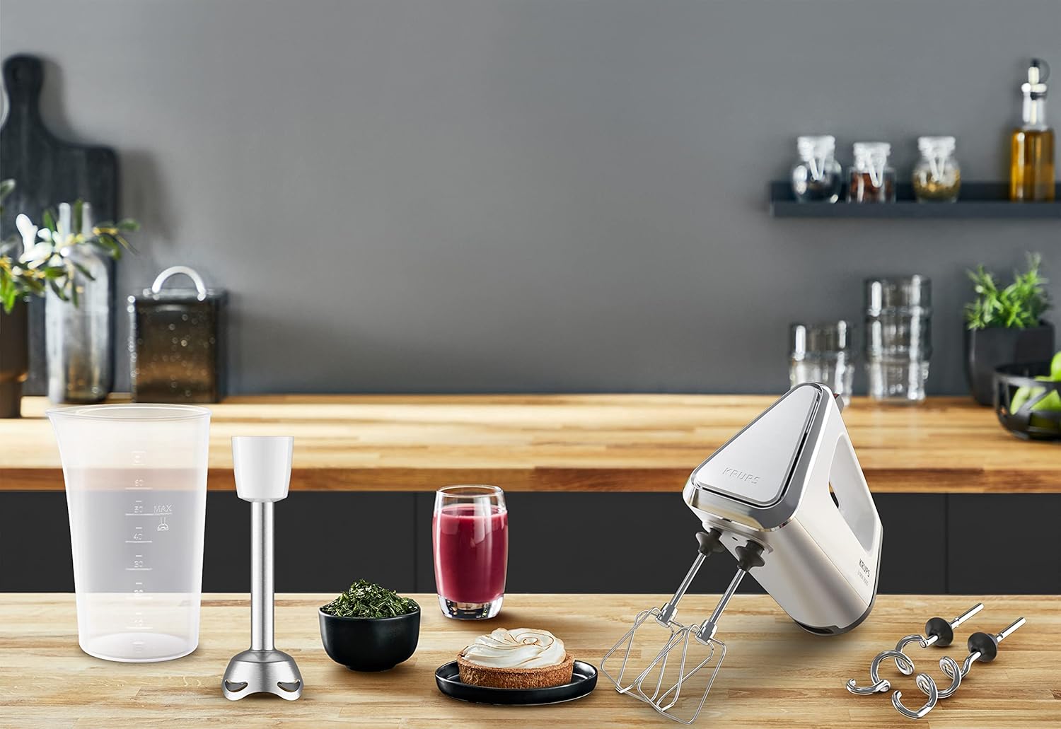 Стил GN9121 включва бъркалка, кука за тесто, приставка за пюре, мерителна чаша