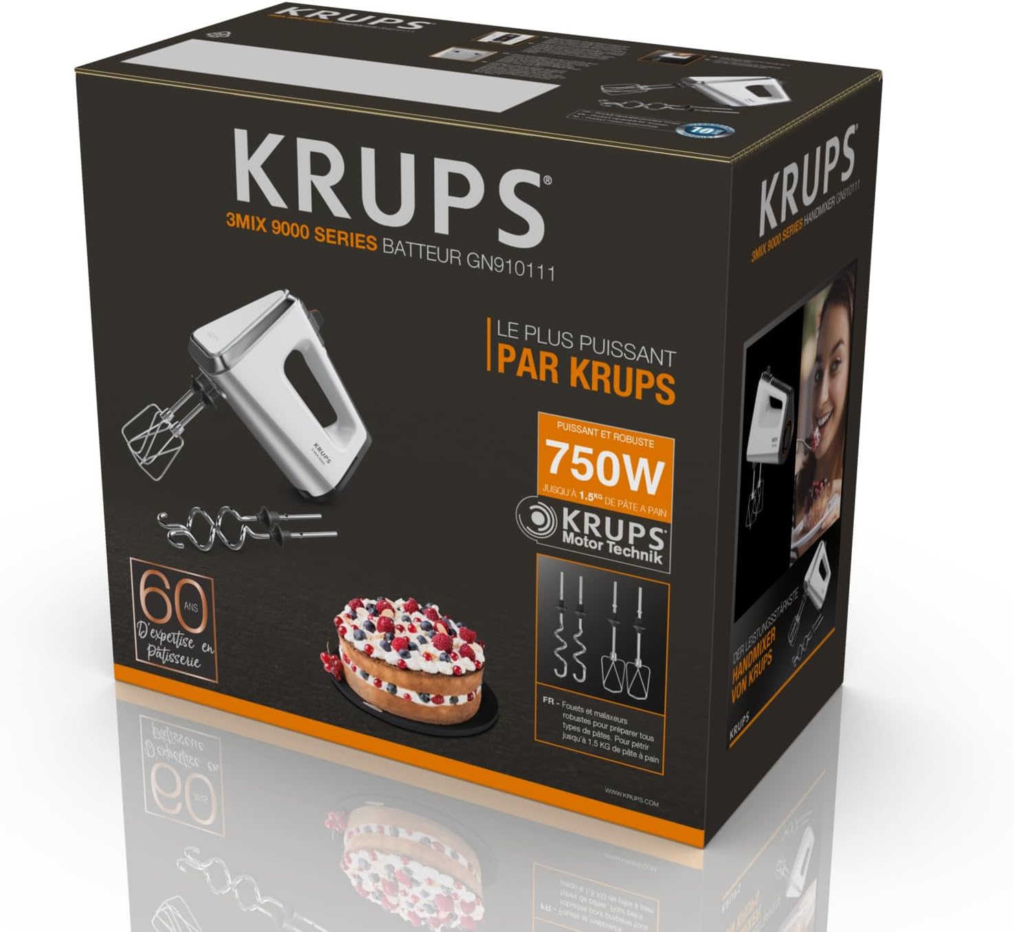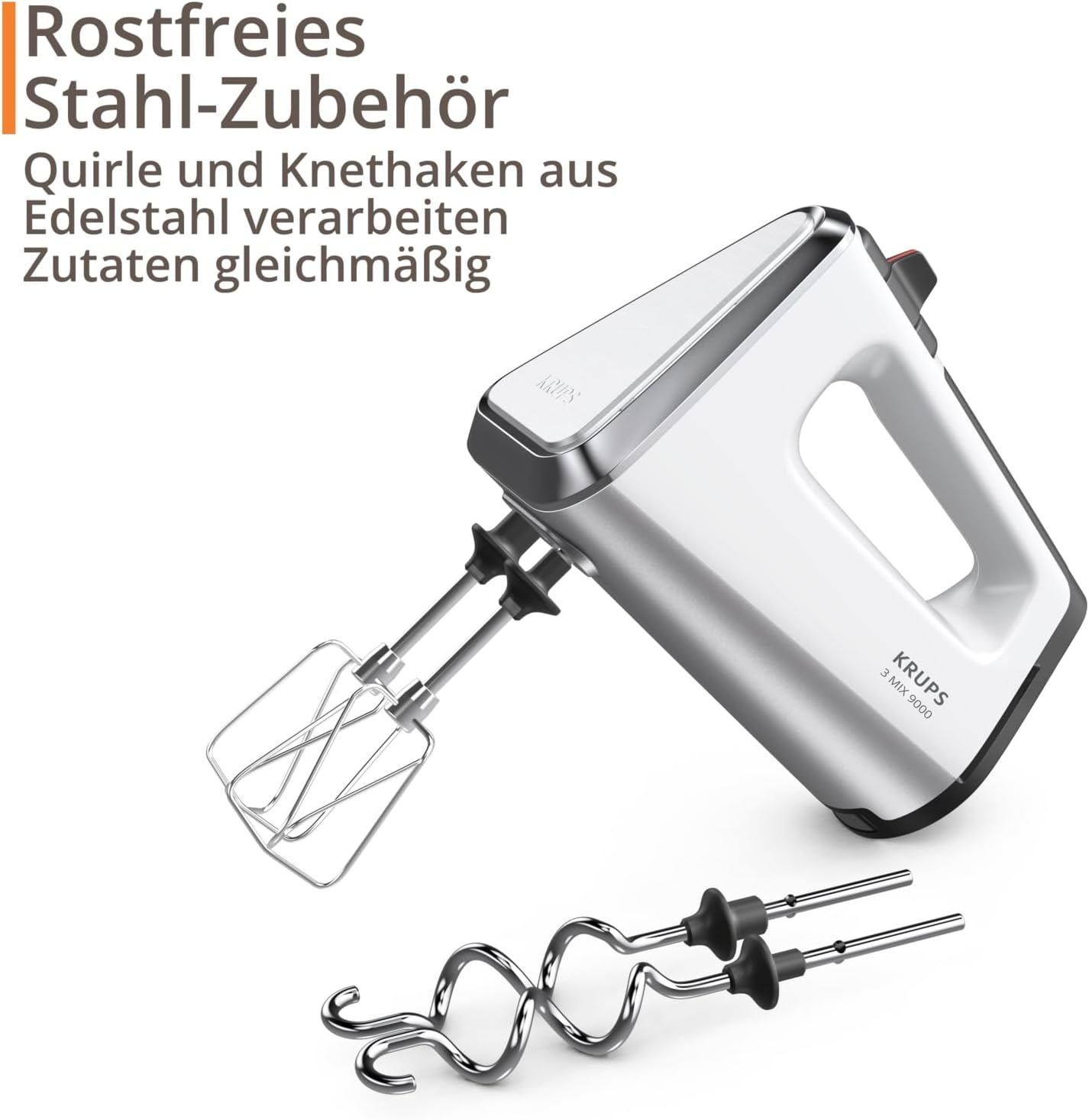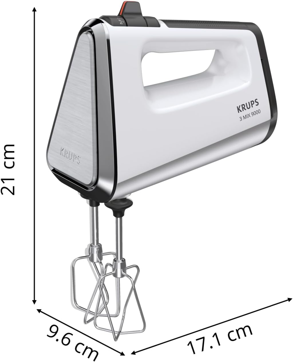 Ръчен миксер Krups 3Mix GN9101 9000, 750 вата, контрол на скоростта, турбо режим, импулсна функция, миксер, ергономична дръжка, дълъг кабел, ръчен миксер с бъркалка и кука за тесто, снежнобял