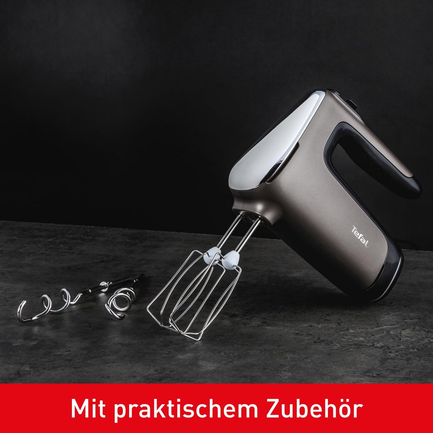 Ръчен миксер Tefal Power Mix HT650E38 Silence, 600 вата, контрол на скоростта, функция турбо и изхвърляне, изключително тих мотор, ръчен миксер, включва 2 бъркалки и 2 куки за тесто, сив