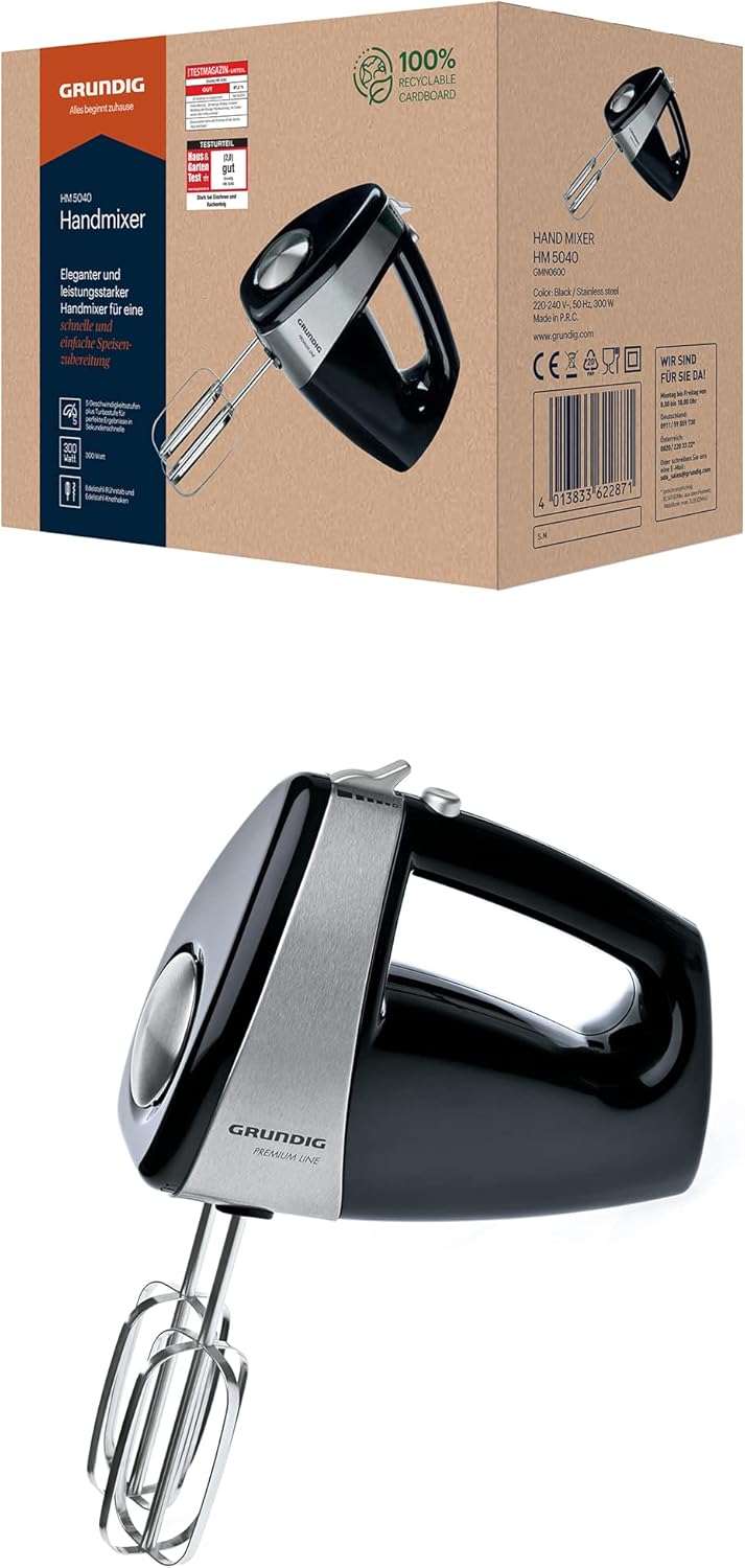 Елегантен и здрав ръчен миксер с мощност 300 вата. 5 степени на скорост и турбо функция за бързи и перфектни резултати за секунди. Благодарение на висококачествените бъркалки и куки за тесто от неръждаема стомана, смесването и обработката на бита сметана, сосове, майонеза, десерти и различни видове тесто е изключително лесно. Тихият и ергономичен дизайн осигурява максимален комфорт за потребителя. Гладката повърхност прави уреда лесен за почистване. Аксесоари от неръждаема стомана, подходящи за съдомиялна машина, за хигиенично и лесно почистване.