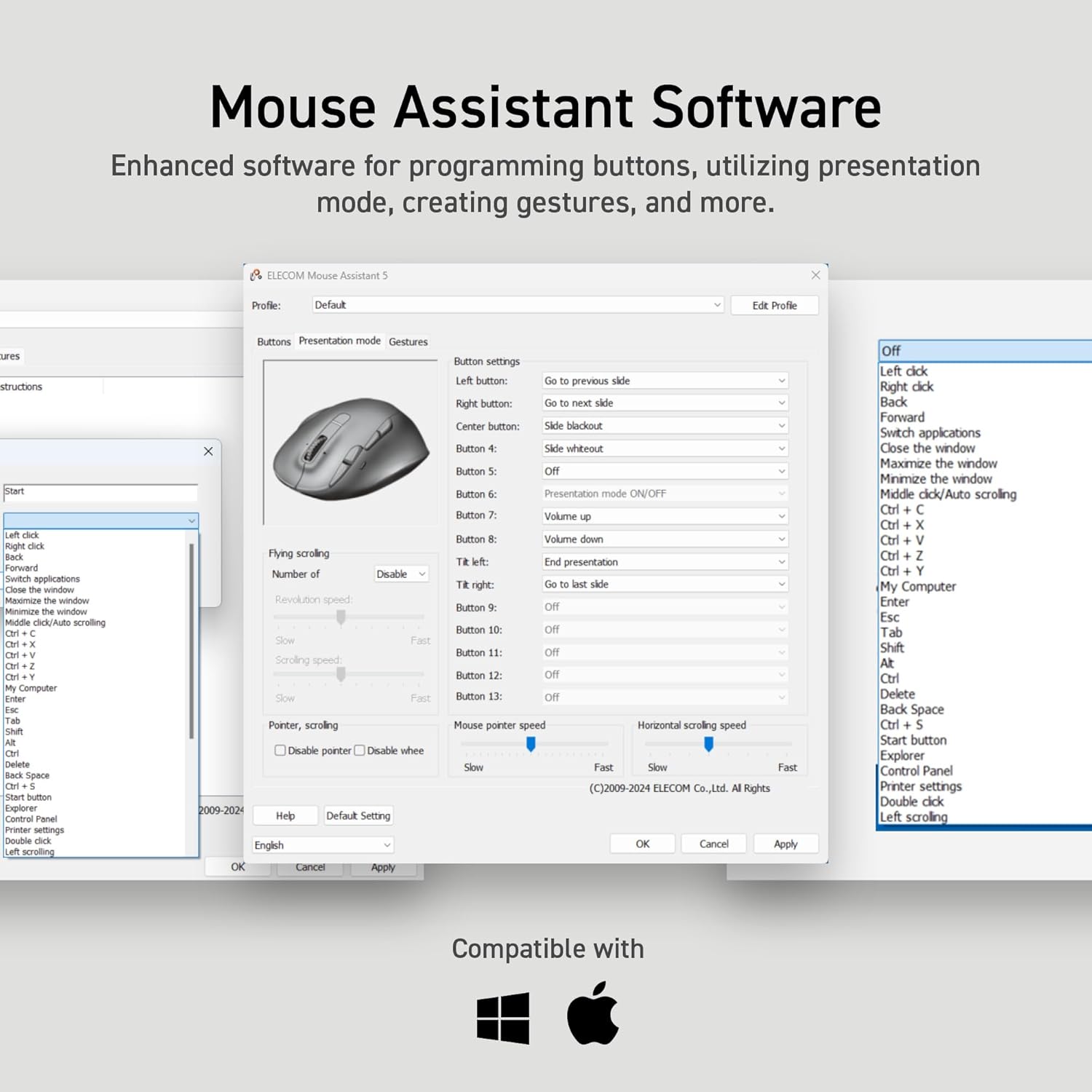Ръчна мишка с тракбол ELECOM, Bluetooth ергономично управление с палеца, Ambidextery, 10-бутонен оптичен сензор, съвместима с PC, лаптоп, Windows, Mac, iPad, Android, Relacon (M-RT1BRXBK)
