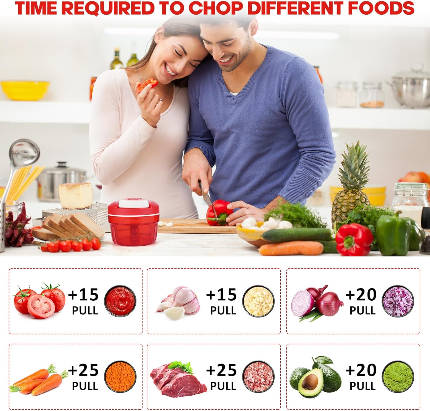 • Прецизно рязане, лесно готвене: С уникално проектираното Т-образно устройство за пристягане на капака на мултичопъра, можете лесно да контролирате дебелината на рязане на храната и да постигнете по-прецизни резултати. Чрез регулиране на силата и честотата на пристягането, можете да постигнете желаното ниво на смачкване и перфектна текстура на вашето ястие, което прави готвенето по-лесно и по-ефективно.