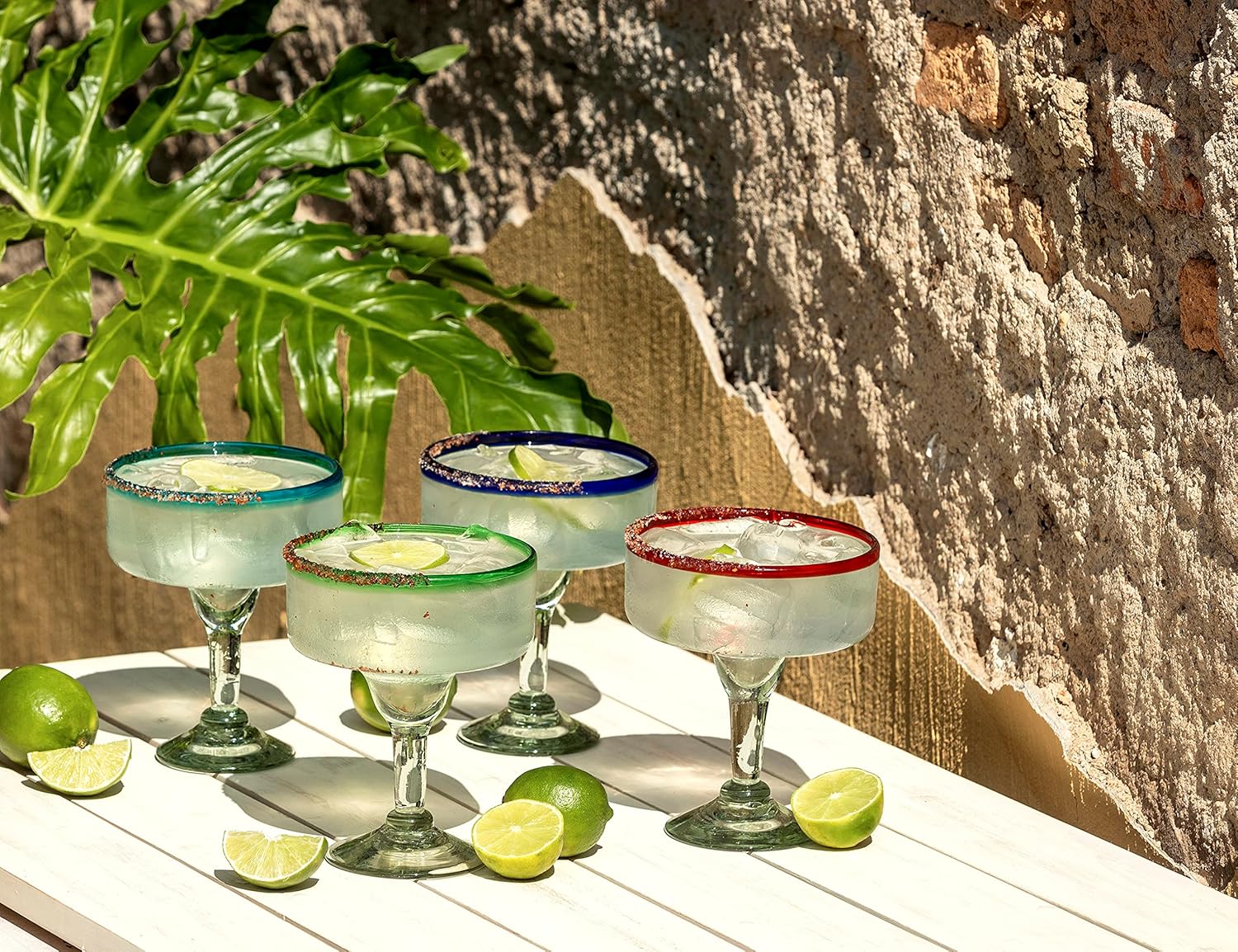 Този комплект от 4 ръчно изработени чаши за маргарита Con-Amor е ръчно изработен от опитни майстори в Мексико. Не съдържа олово и е безопасен за употреба. Измийте преди първа употреба. Тъй като продуктът е ръчно изработен, е възможно да има леки разлики в размера, цвета, теглото и формата.