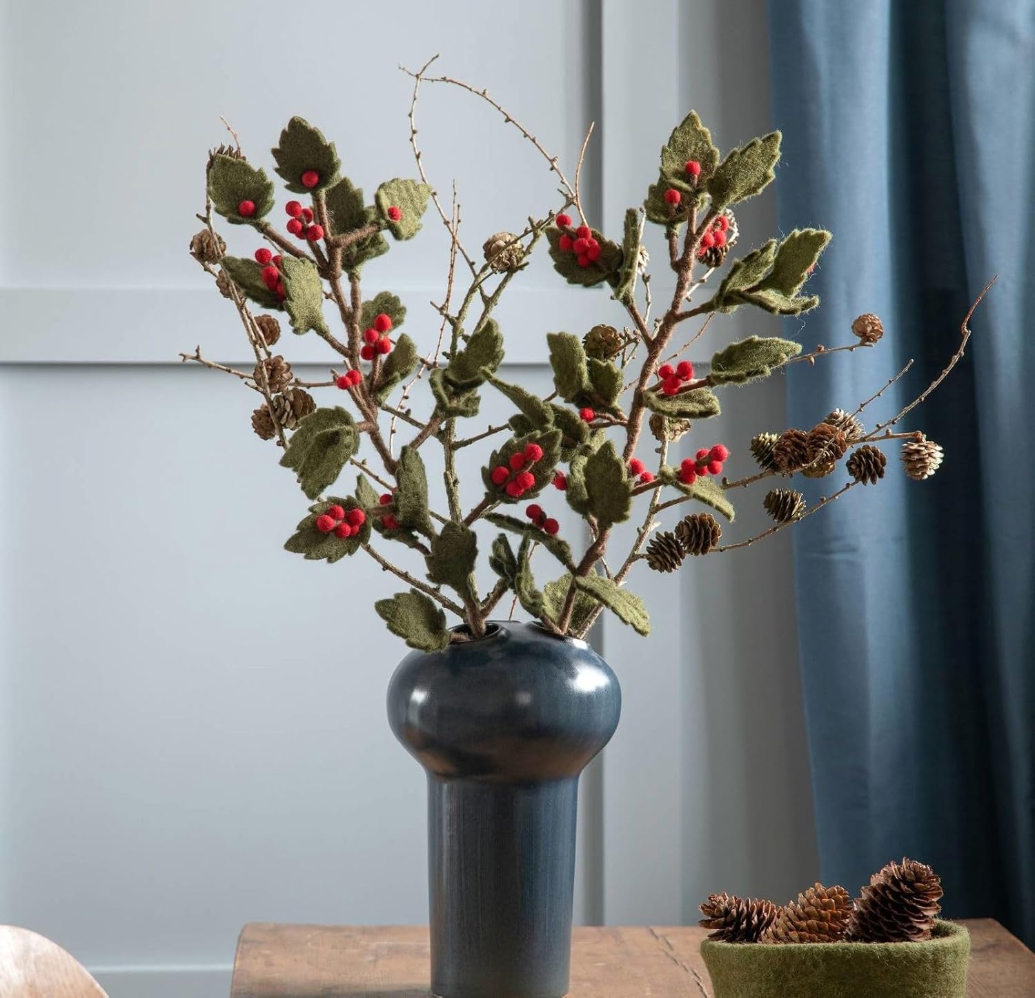 Тези красиви клонки могат да се използват за създаване на страхотни декоративни акценти. Вечни, устойчиви и просто красиви. Във ваза с чудесен медальон, изработен от филц, всичко е най-добре завършено. Продуктите на Gry & Sif са ръчно изработени в Непал от новозеландска вълна, при справедливи условия на труд. Gry & Sif подкрепя непалските жени да си осигуряват прехраната.