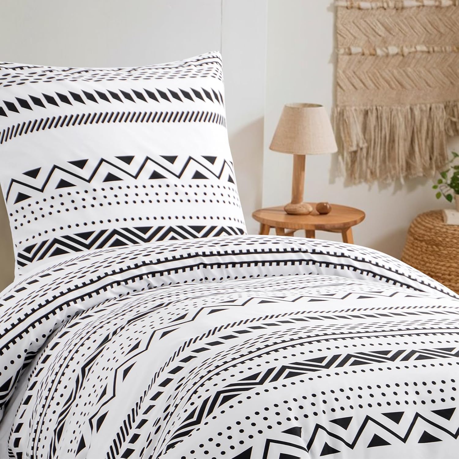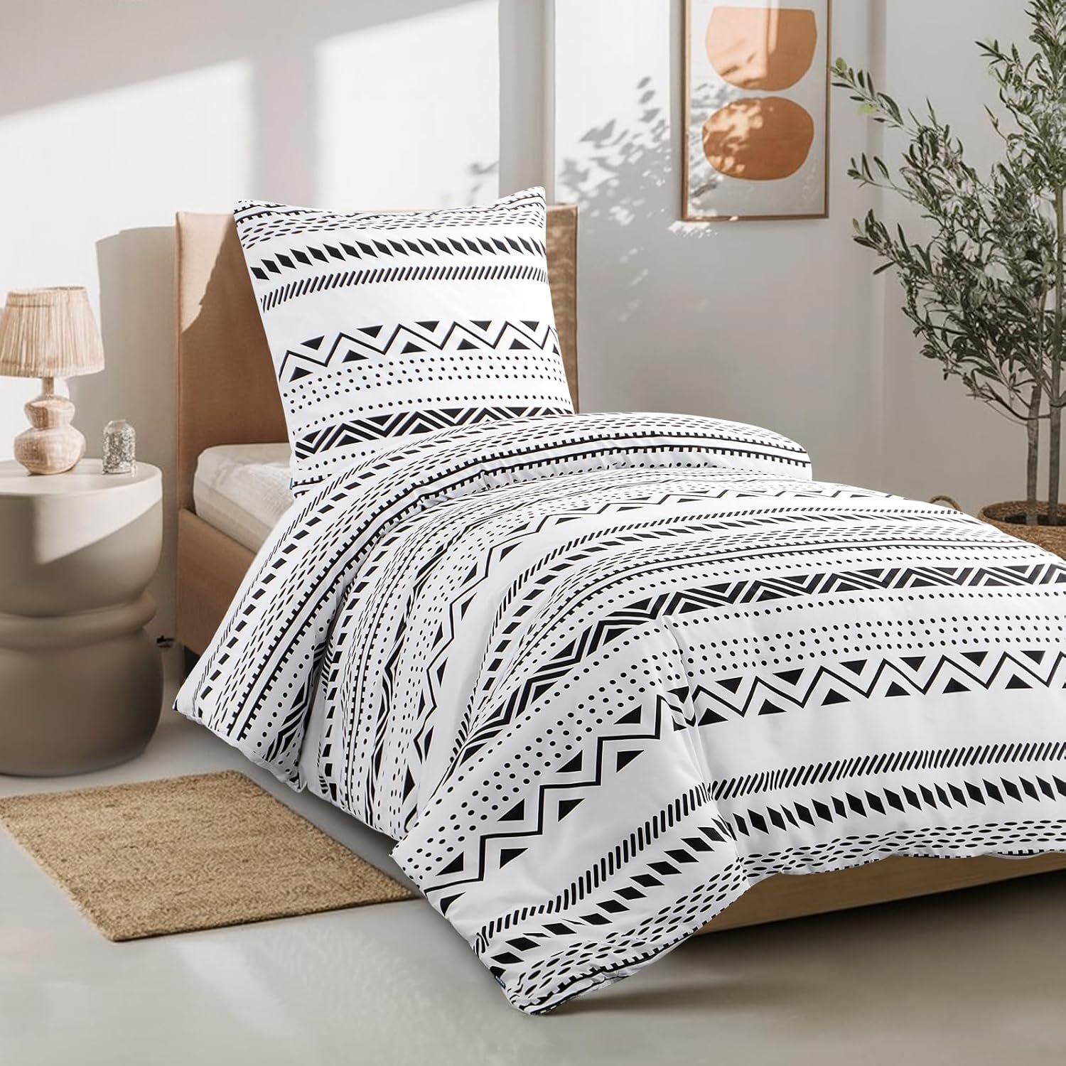 RUIKASI Спално бельо от 2 части, 155 x 220 см, Сив, Плик за завивка 155 x 220 см, Комплект с бохо мотив, Комплекти спално бельо 155 x 220 см, Изработено от микрофибър с цип, Меко и нежелаещо гладене