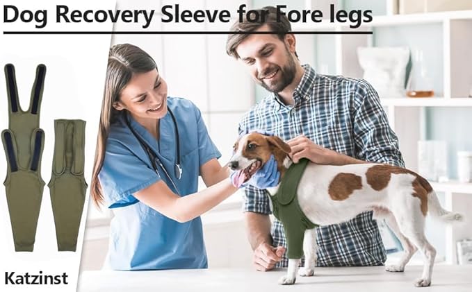 Ръкав за възстановяване за кучета, Опора за лакът за кучета, Протектор за лакътна превръзка, Ръкав за възстановяване след операция за кучета за предни десен и ляв крак за горещи точки, рани, Превръзки, Против облизване за кучета, Зелен S