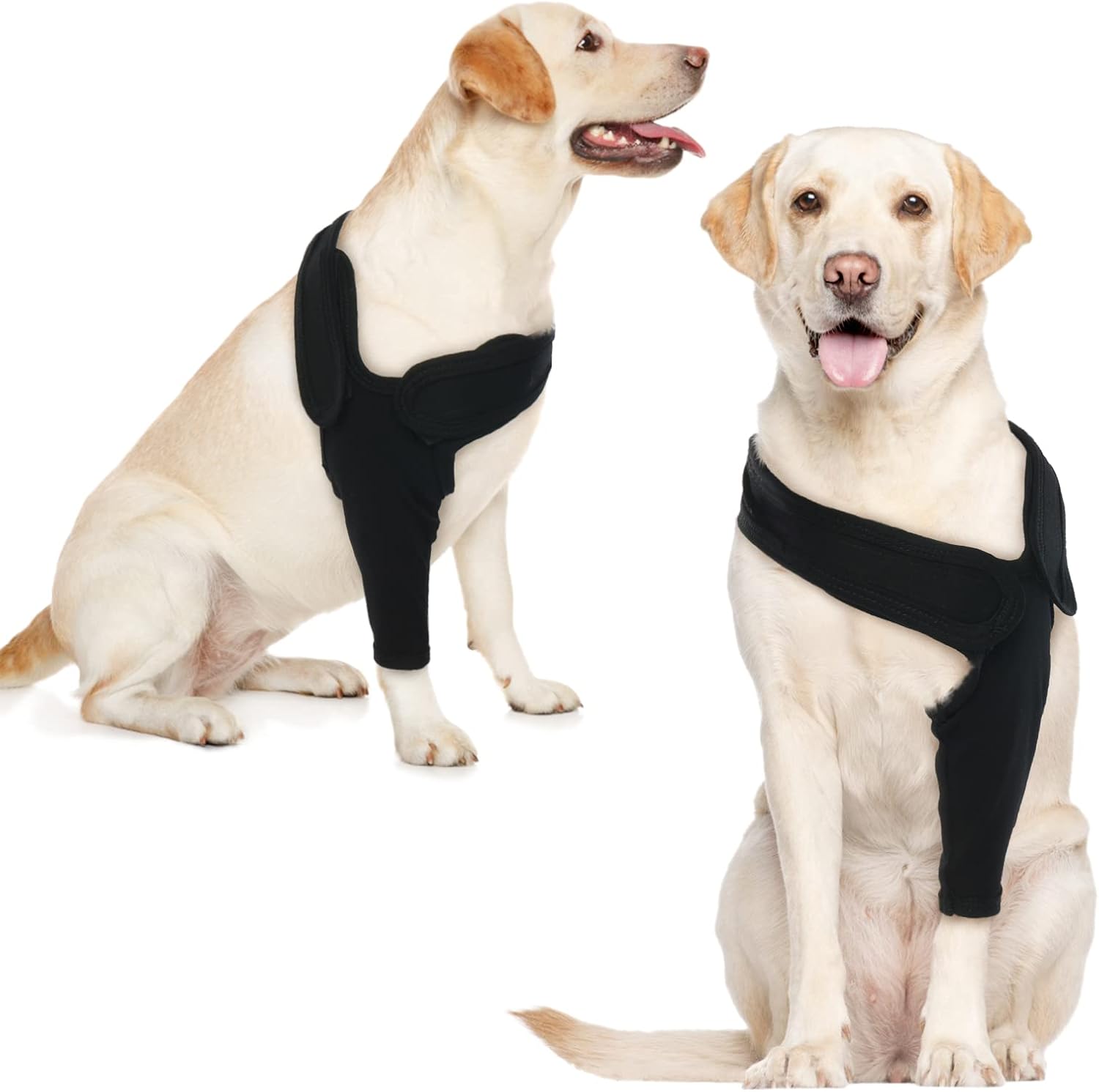 Ръкав за възстановяване за кучета, Опора за лакът за кучета, Протектор за лакътна превръзка, Ръкав за възстановяване след операция за кучета за предни десни и леви крака за горещи точки, рани, Превръзки, Против облизване за кучета, Черен S