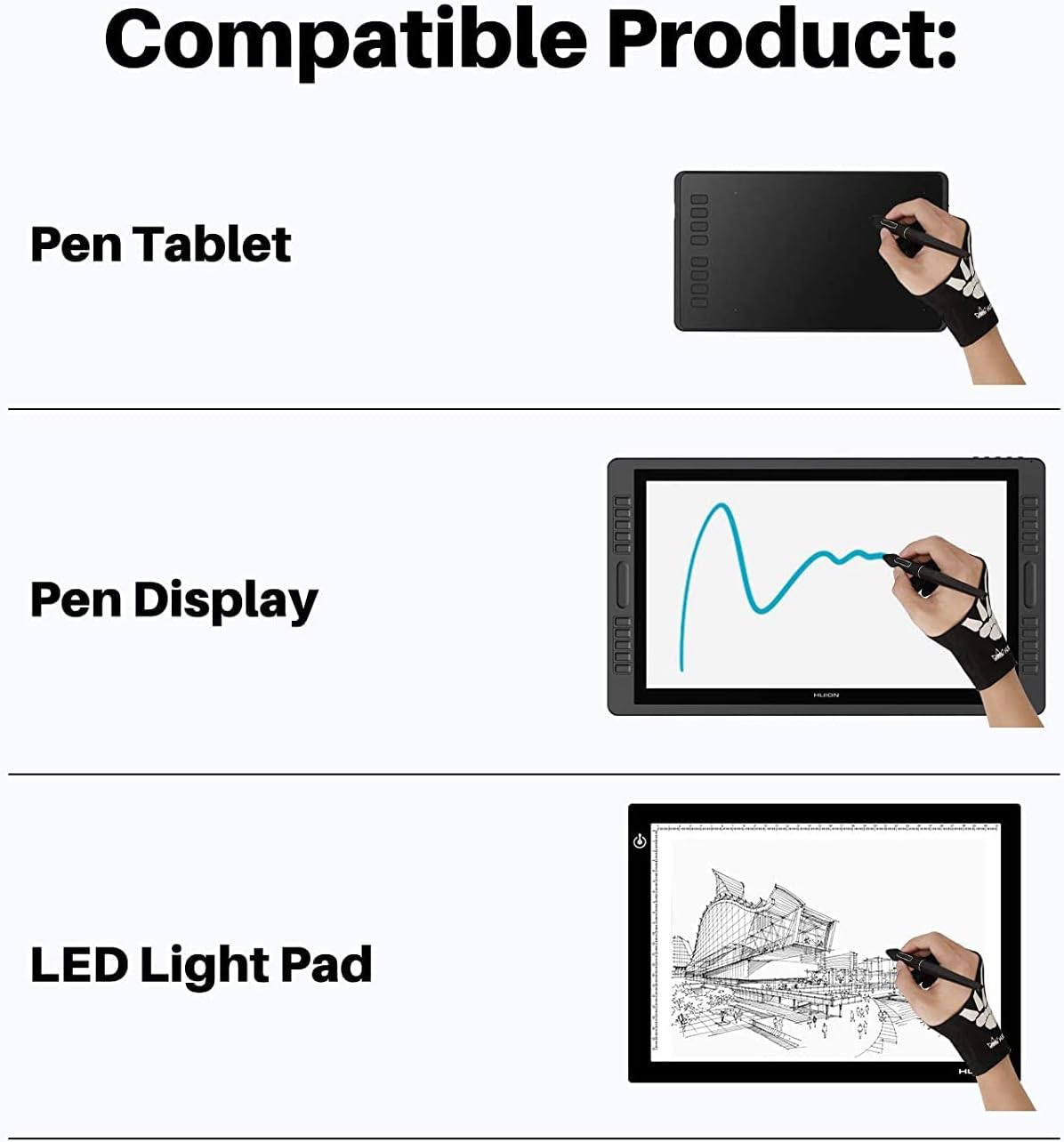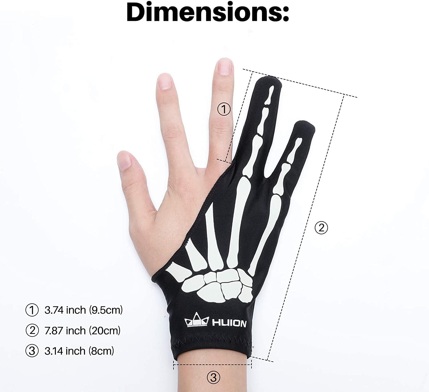 Ръкавица Huion Skeleton за графичен таблет за рисуване, идеална ръкавица против замърсяване за хора, които използват таблети за рисуване и светлинни кутии (1 брой свободен размер, подходяща за дясна ръка)