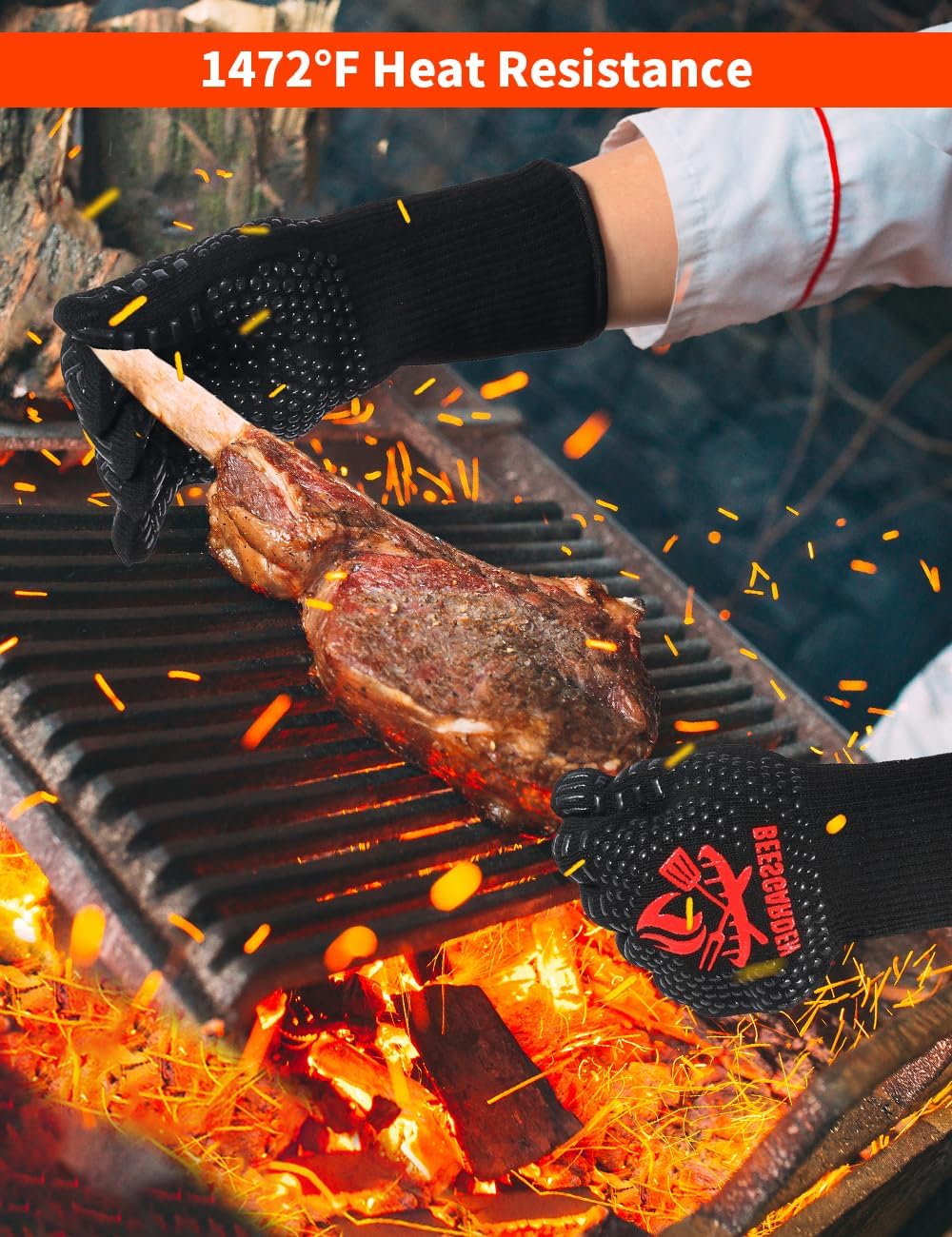 • Ръкавиците за барбекю Beesgarden са предназначени за различни сценарии и гарантират, че вие ​​и вашето семейство можете безопасно да се наслаждавате на печене на скара, готвене, печене, печене в пушилня, боравене с месо, хващане на топли храни и дейности около камини или лагерни огньове.