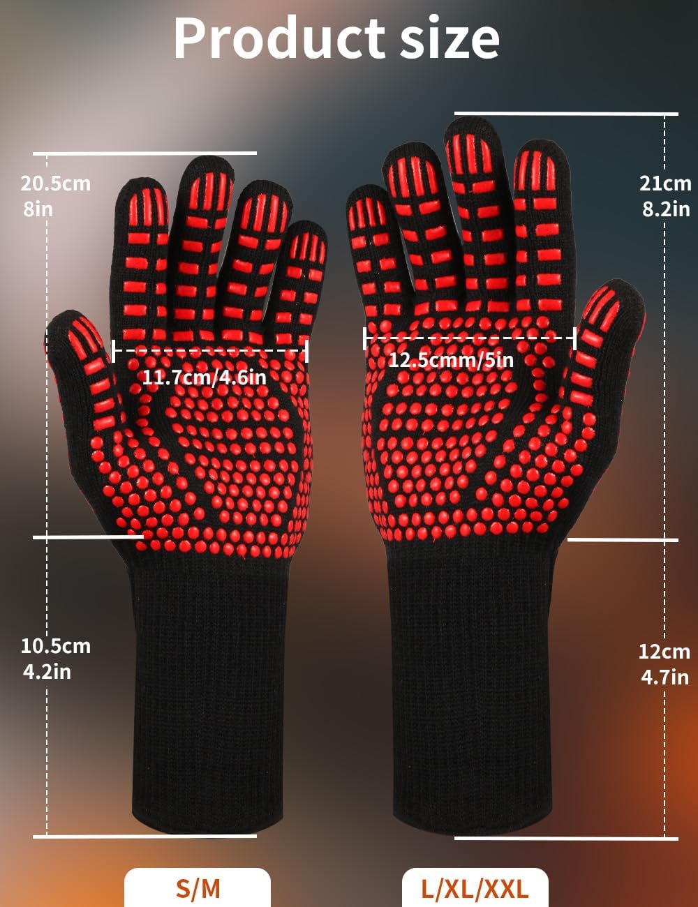 • Размер Нашите ръкавици са с еластичен дизайн и са подходящи за повечето размери ръце. Лесно се обличат и свалят и могат да се адаптират към различни форми на ръцете. Тези ръкавици за барбекю не се различават за дясна и лява ръка и могат да се носят от двете страни. Идеални аксесоари за барбекю за мъже, жени и тийнейджъри.