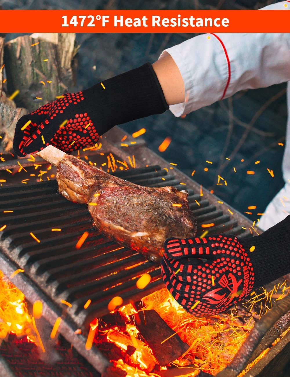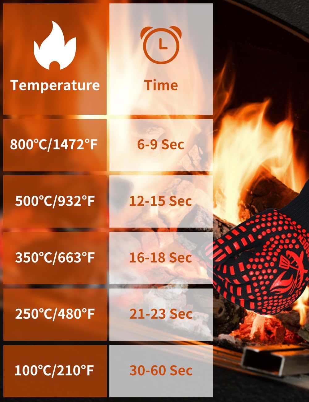 • ОТЛИЧНА ТОПЛОУСТОЙЧИВОСТ ДО 800°C: Ръкавиците за барбекю Beesgarden са изработени от арамид, същият високоефективен материал, използван в огнеупорните дрехи на пожарникарите. Тези ръкавици са получили сертификат EN407, което гарантира тяхната забележителна топлоустойчивост до 800°C. Те са внимателно проектирани, за да предпазват ръцете ви при всяка стъпка.