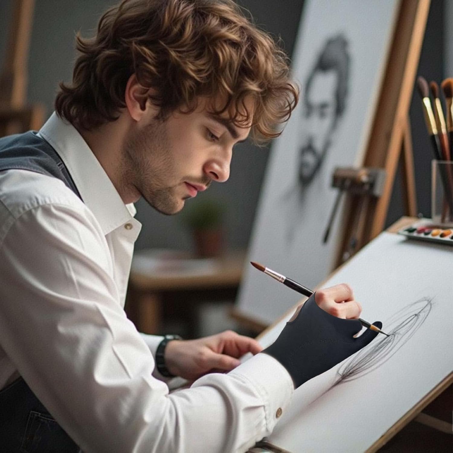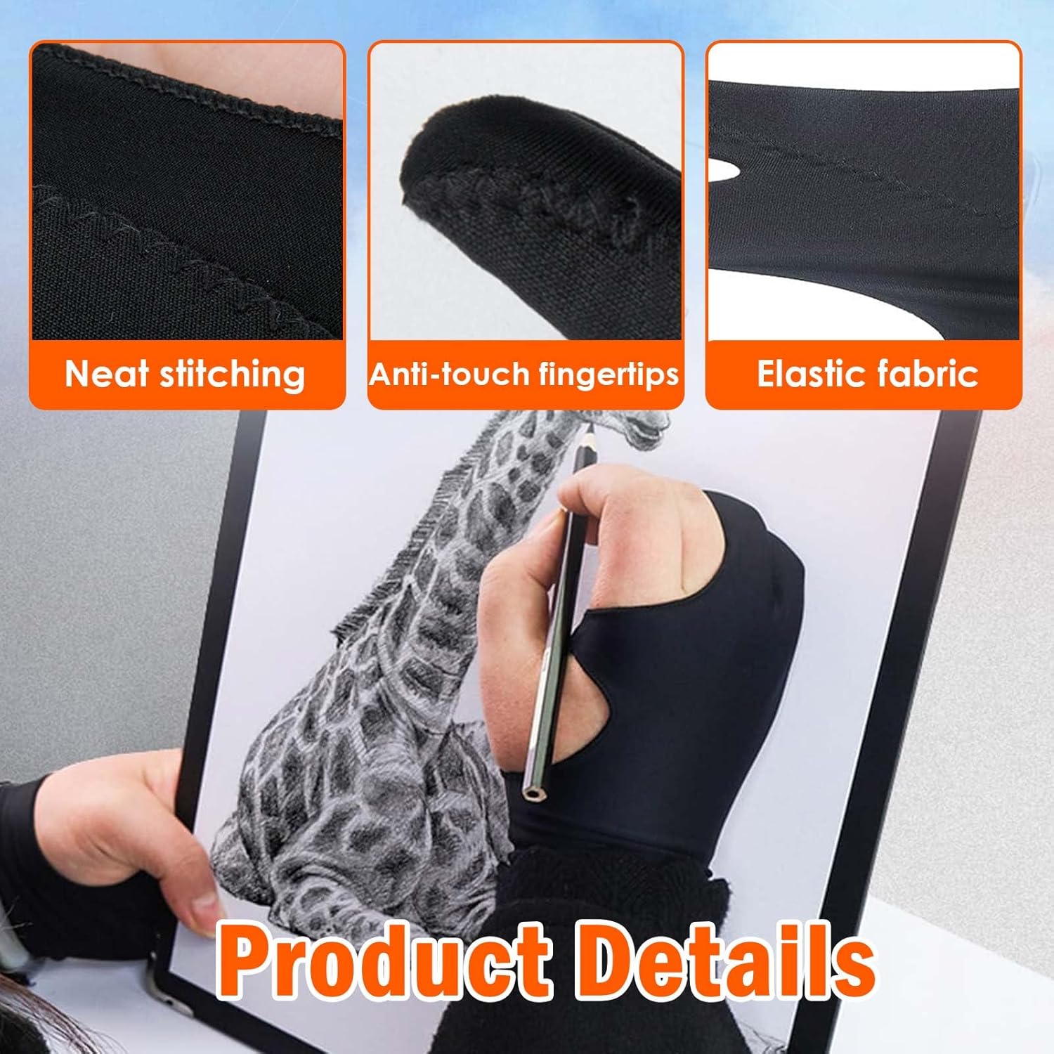 Тези ръкавици за рисуване са практичен и незаменим инструмент за всеки, който работи с цифрови устройства, независимо дали на графичен таблет или сензорен екран. Комплектът включва четири ръкавици (21,5 x 9 см), специално проектирани за употреба с рисуване и дигитално рисуване. Те предлагат перфектно прилягане, особено благодарение на иновативната каишка, която гарантира, че ръкавиците ще останат на мястото си по време на целия творчески процес. Материалът е мек, гъвкав и дишащ, което ви позволява да ги носите удобно за продължителни периоди. Ергономичният дизайн с ниско триене прави работата с таблети и дисплеи много по-лесна, осигурявайки плавно движение на ръката, без да се прави компромис с вашите произведения на изкуството. Подходящи както за професионалисти, така и за начинаещи, ръкавиците предлагат комфорт за всички видове дигитално изкуство, от скициране до завършени дизайни.