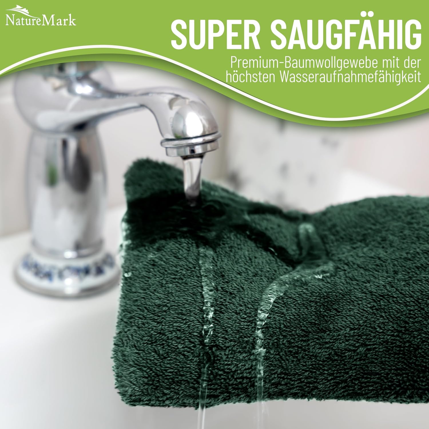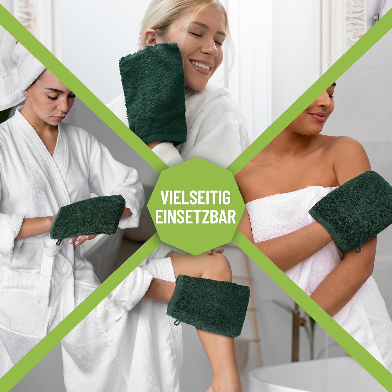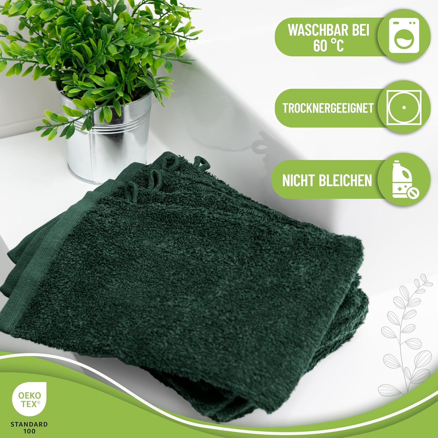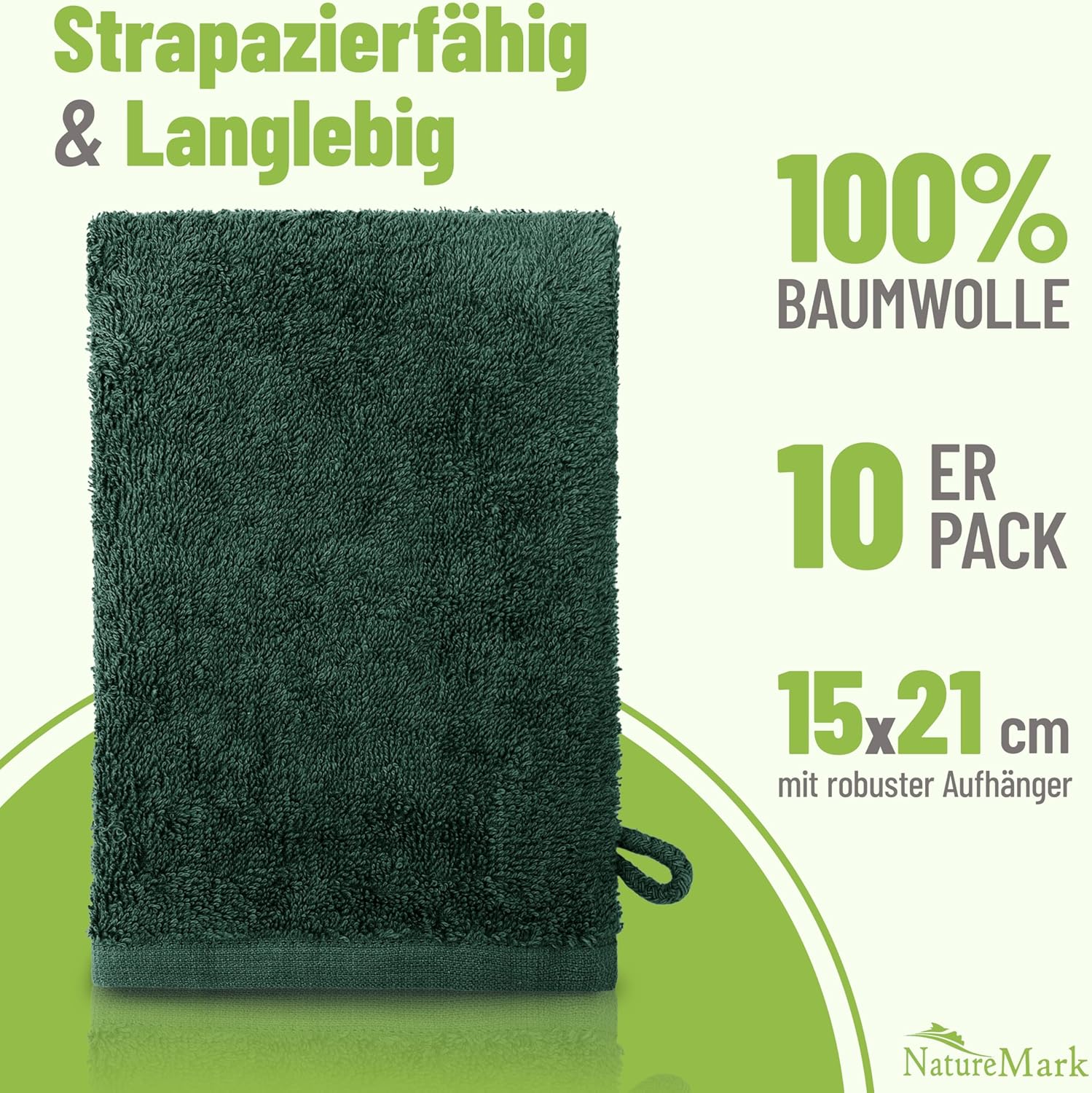 Ръкавици за миене NatureMark от хавлиен плат, пакет от 10, кърпа за миене, 100% памук, тъмнозелени, 15 x 21 см
