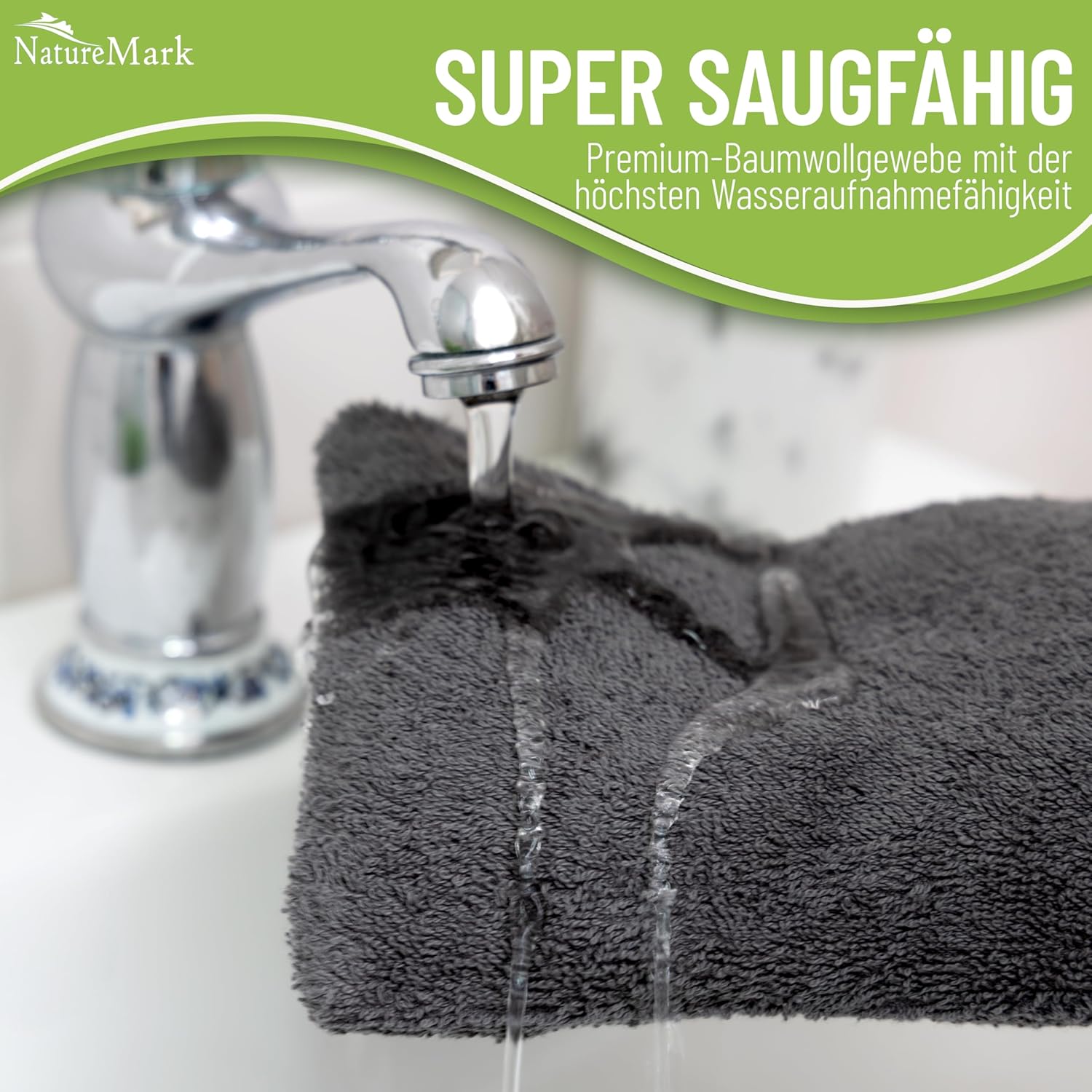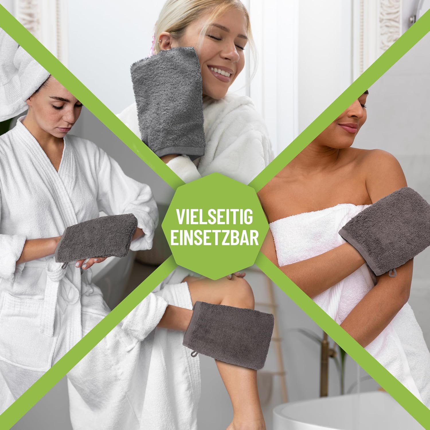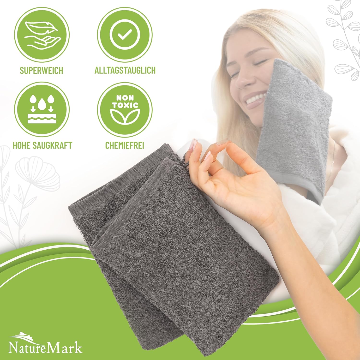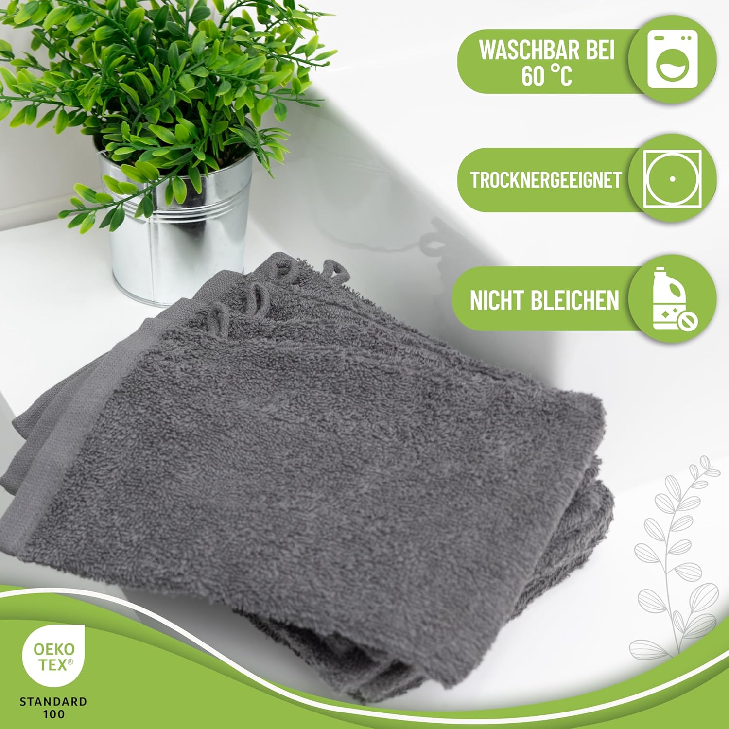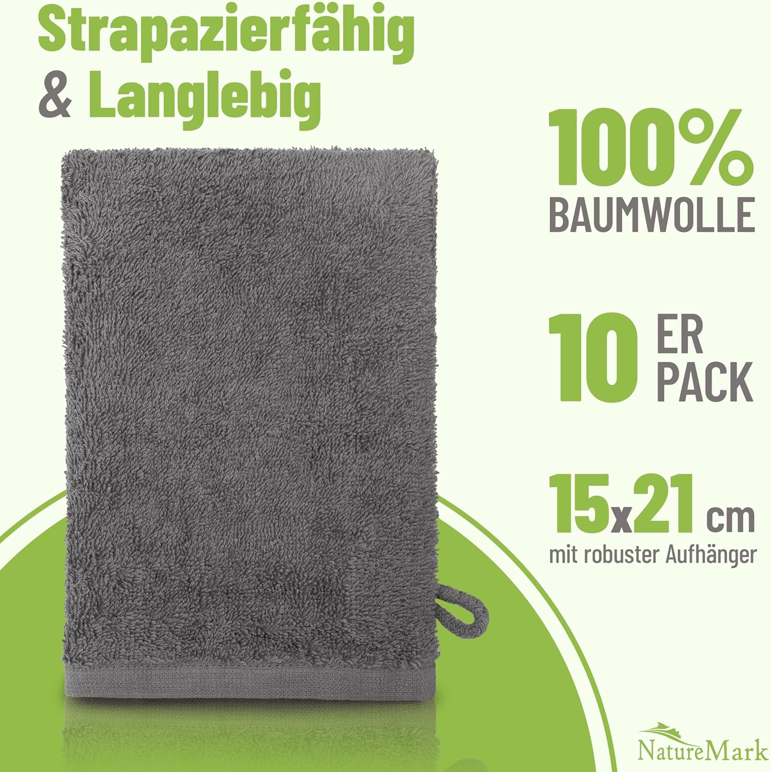Ръкавици за миене NatureMark от хавлиен плат, пакет от 10, кърпи за миене, 100% памук, 15 x 21 см, антрацитно сиви