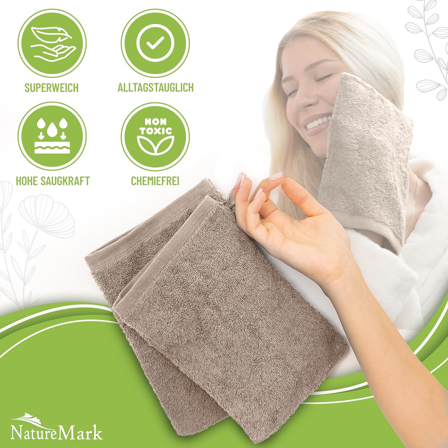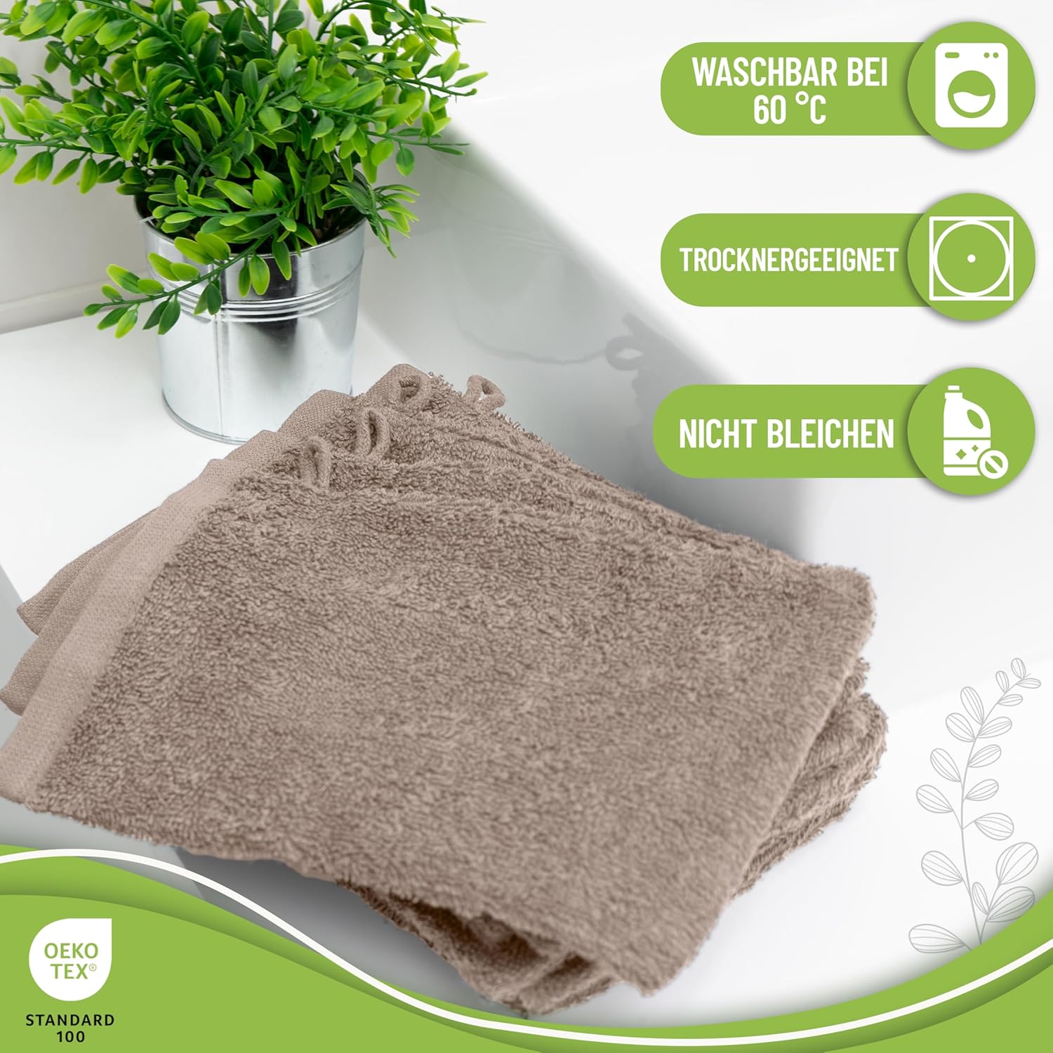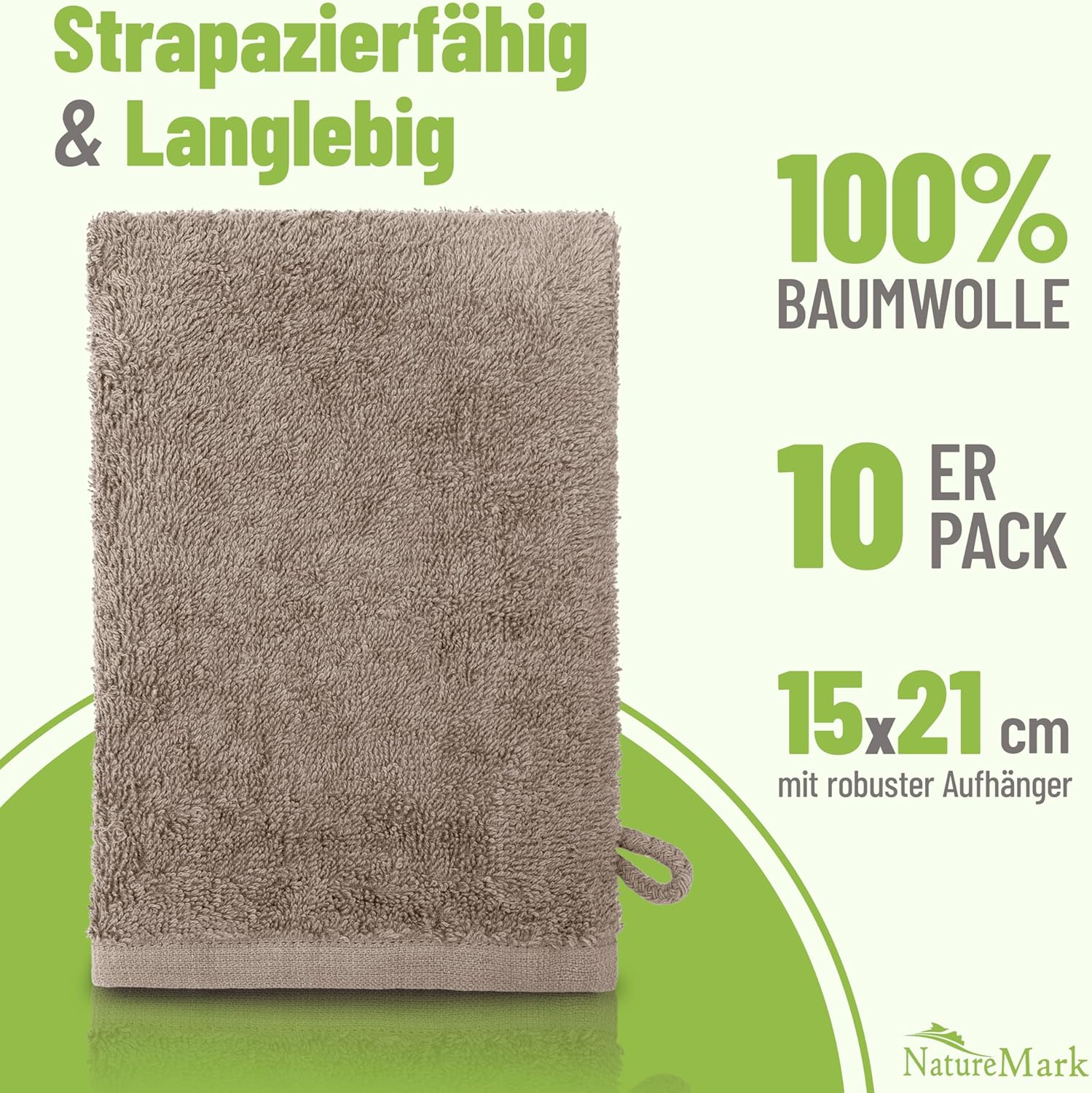 Ръкавици за миене NatureMark от хавлиена кърпа, пакет от 10, кърпа за миене, 100% памук, 15 x 21 см, пясъчно/бежово