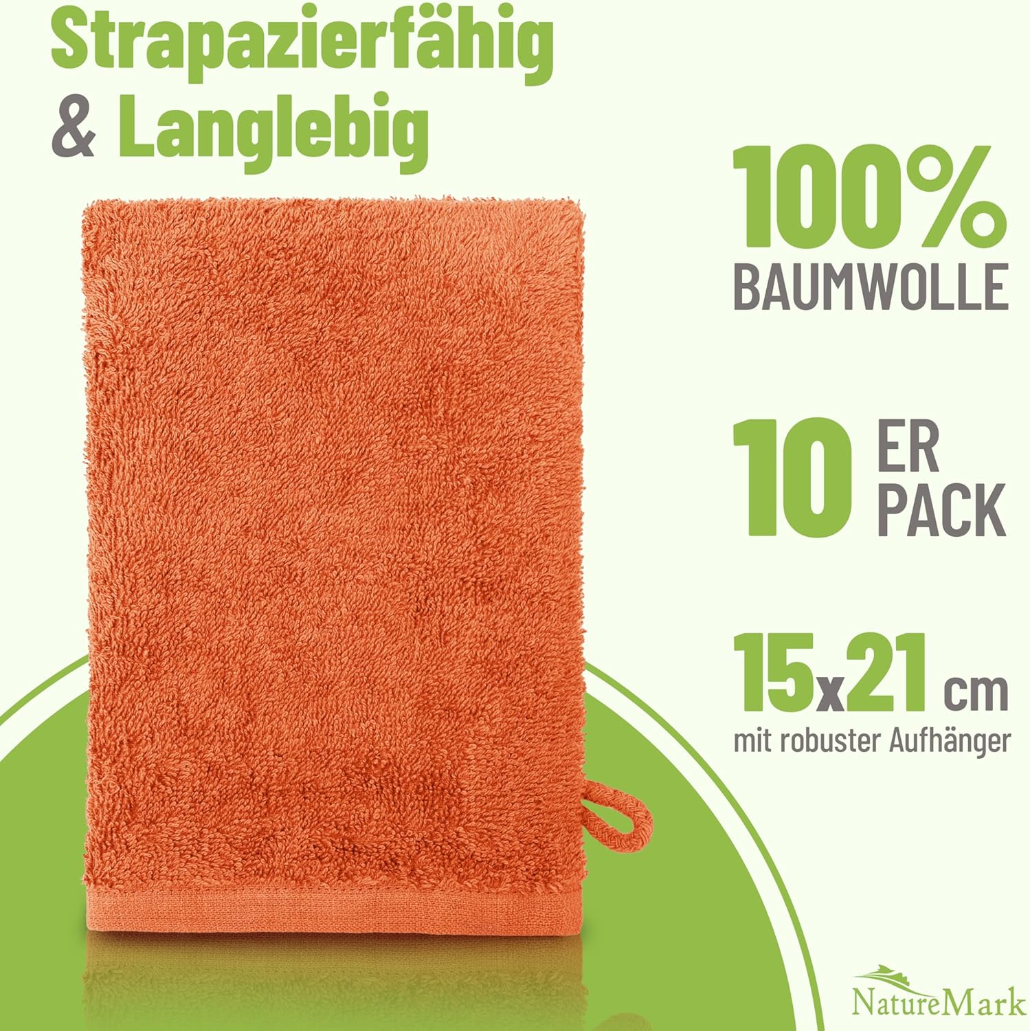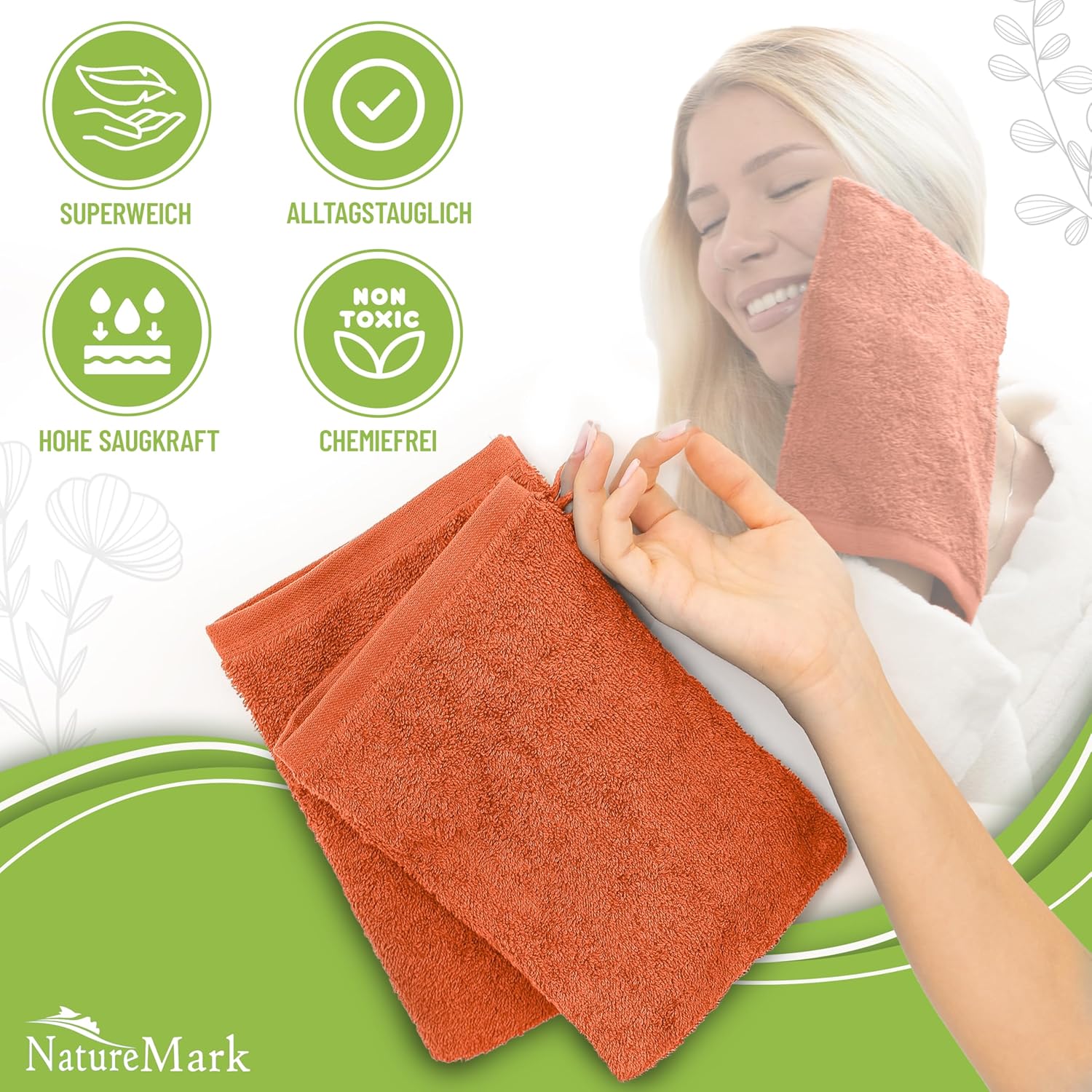 Ръкавици за миене NatureMark от хавлиена кърпа, пакет от 10, кърпа за миене, 100% памук, теракота, 15 x 21 см