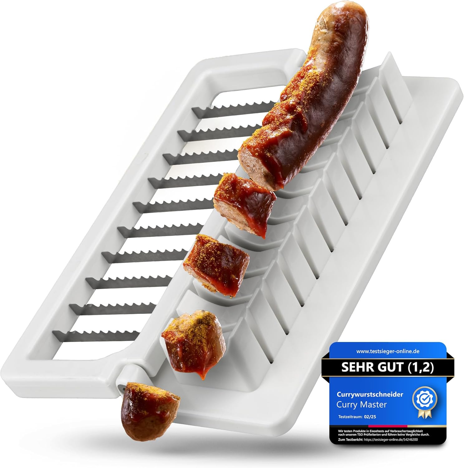 Ръководство за резачка за наденица с къри - Резачка за наденица за перфектни наденици с къри и братвурст | Ултра остри остриета от неръждаема стомана и лесно почистване | Кухненски помощник и аксесоари за грил за мъже и жени