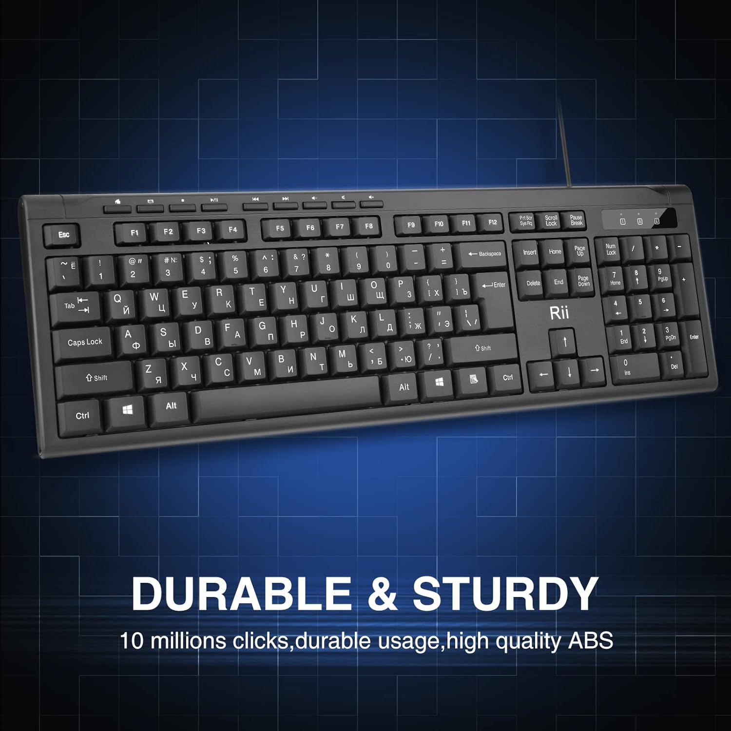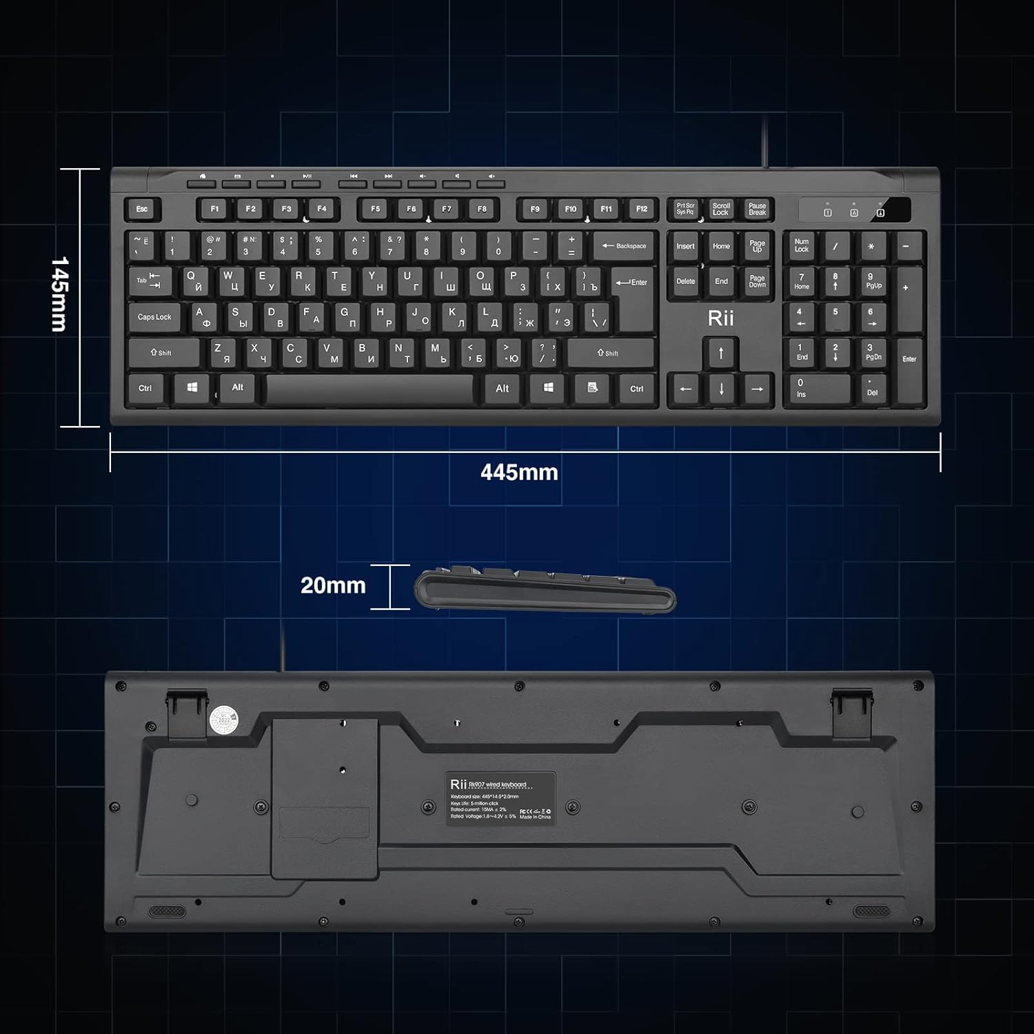 Руска клавиатура Rii с кабел за Mac/PC/таблет/Windows/Android/Microsoft - тънък бизнес дизайн