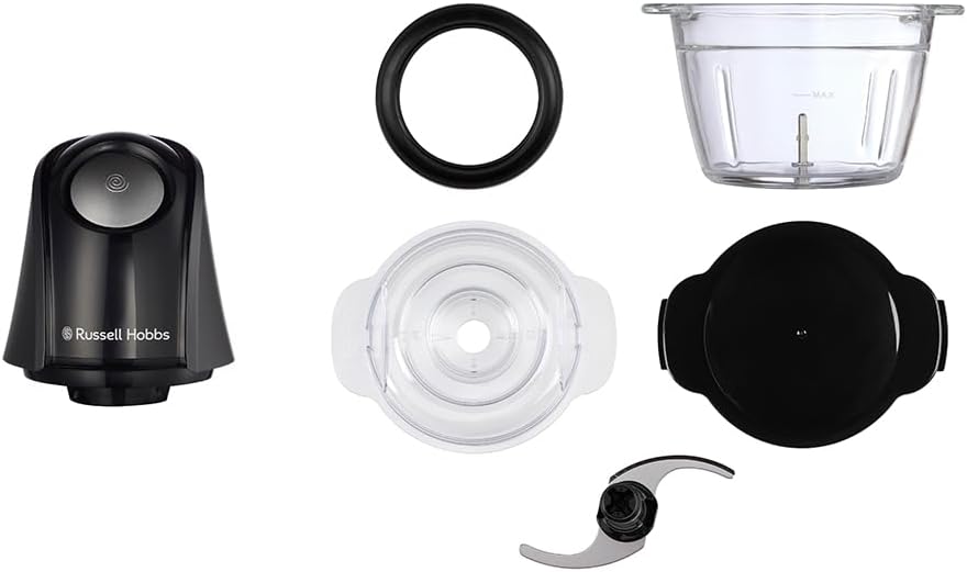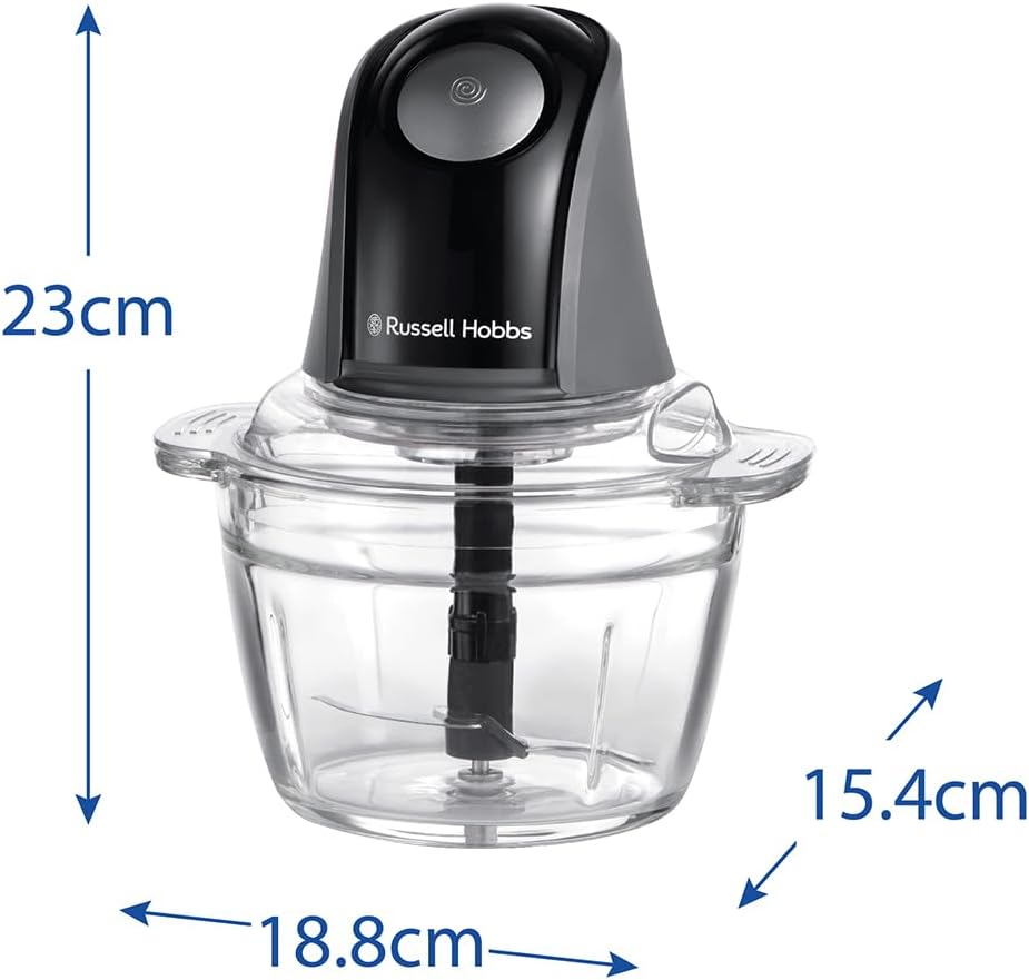 Russell Hobbs Кухненски робот [Мини чопър] Електрически (за зеленчуци, плодове, месо, лук, контейнер 1 литър, подходящ за съдомиялна машина, 2 скорости, ножове от неръждаема стомана, 350 W), матов въглен 27131-56