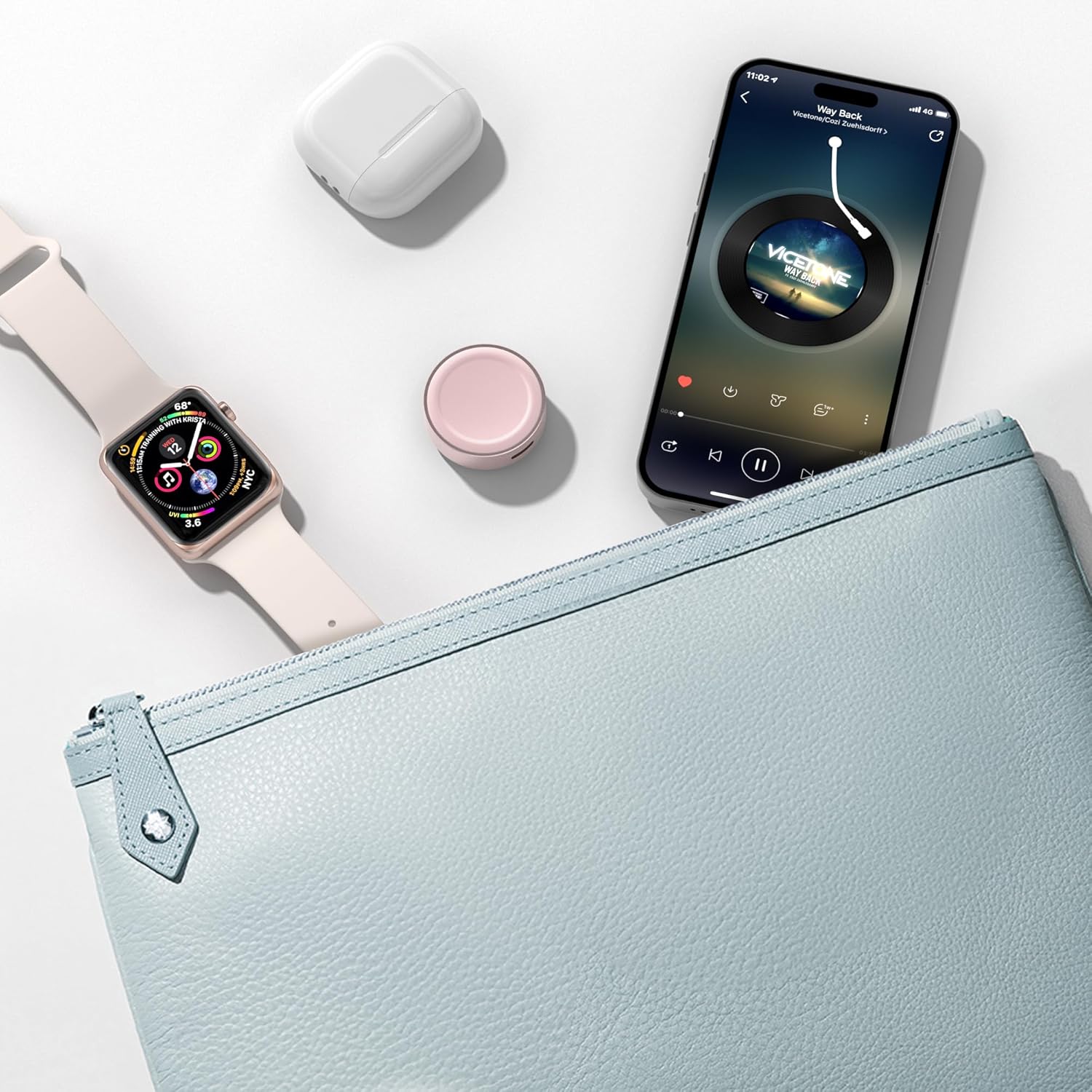 • С компактния и лек дизайн (диаметър 3,5 см x височина 1 см и тегло само 17 грама), това зарядно устройство се побира без усилие в джоба ви, което го прави идеално за пътуване или ежедневно пътуване. Никога повече не се притеснявайте, че сте в движение без батерия; дръжте вашия Apple Watch зареден навсякъде.