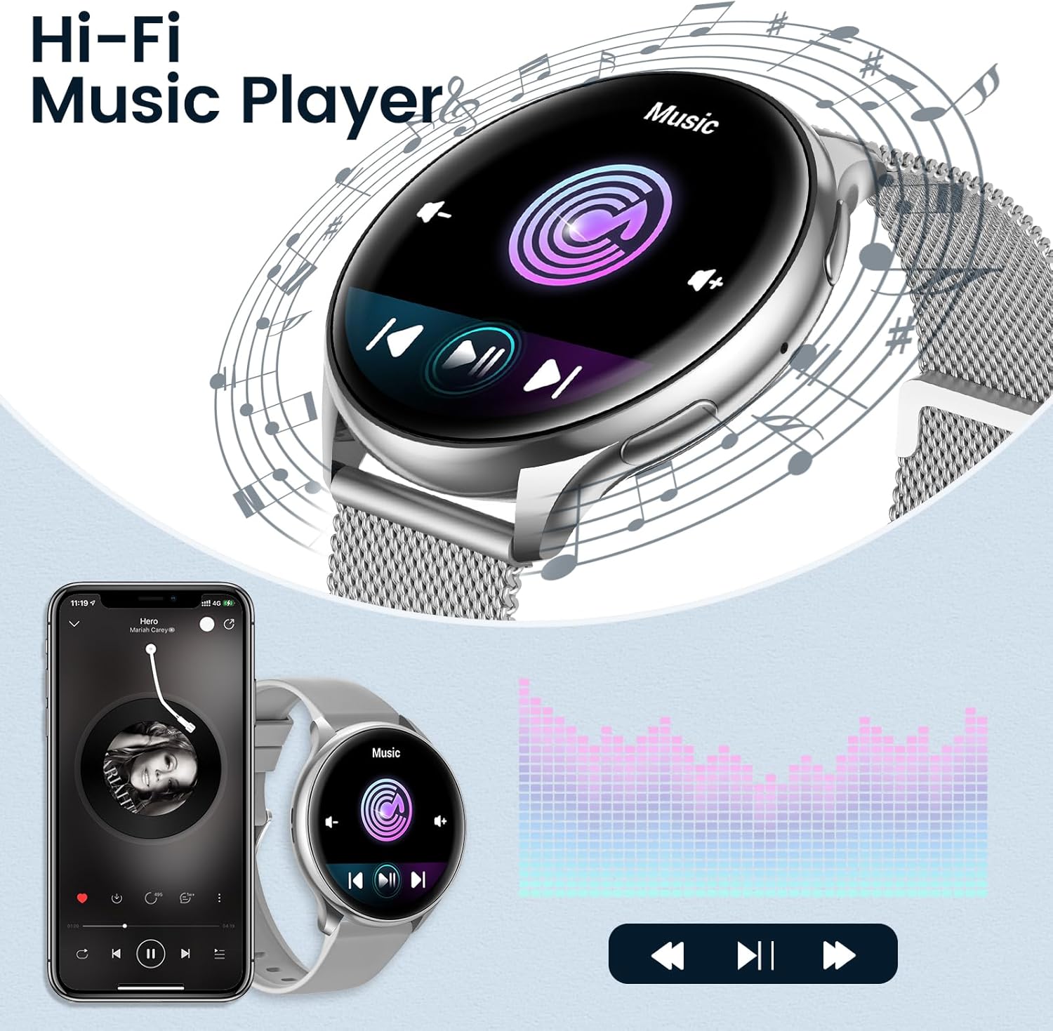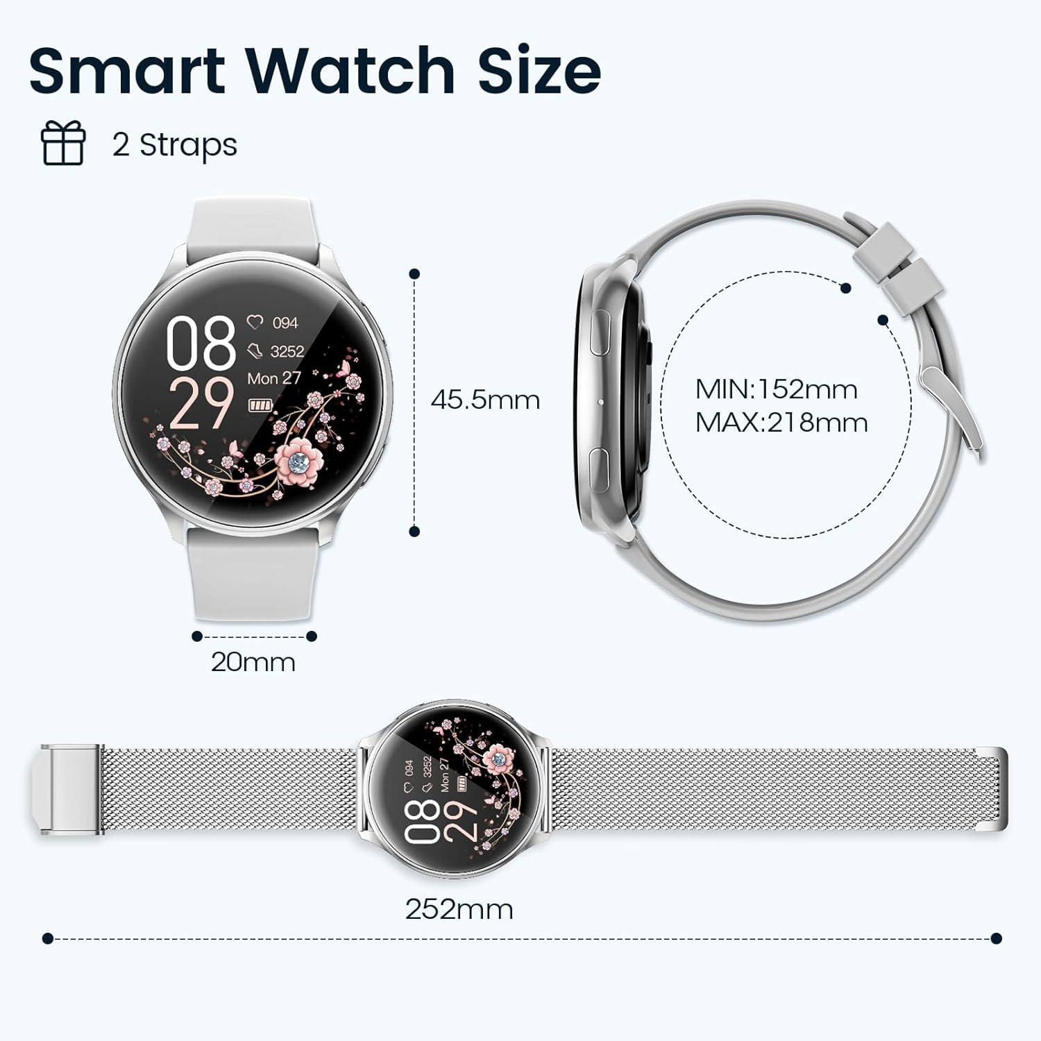 RUXINGX women's smart watch offers an elegant Milanese bracelet and a comfortable silicone strap, and your style can be changed as desired, which can easily handle different occasions.