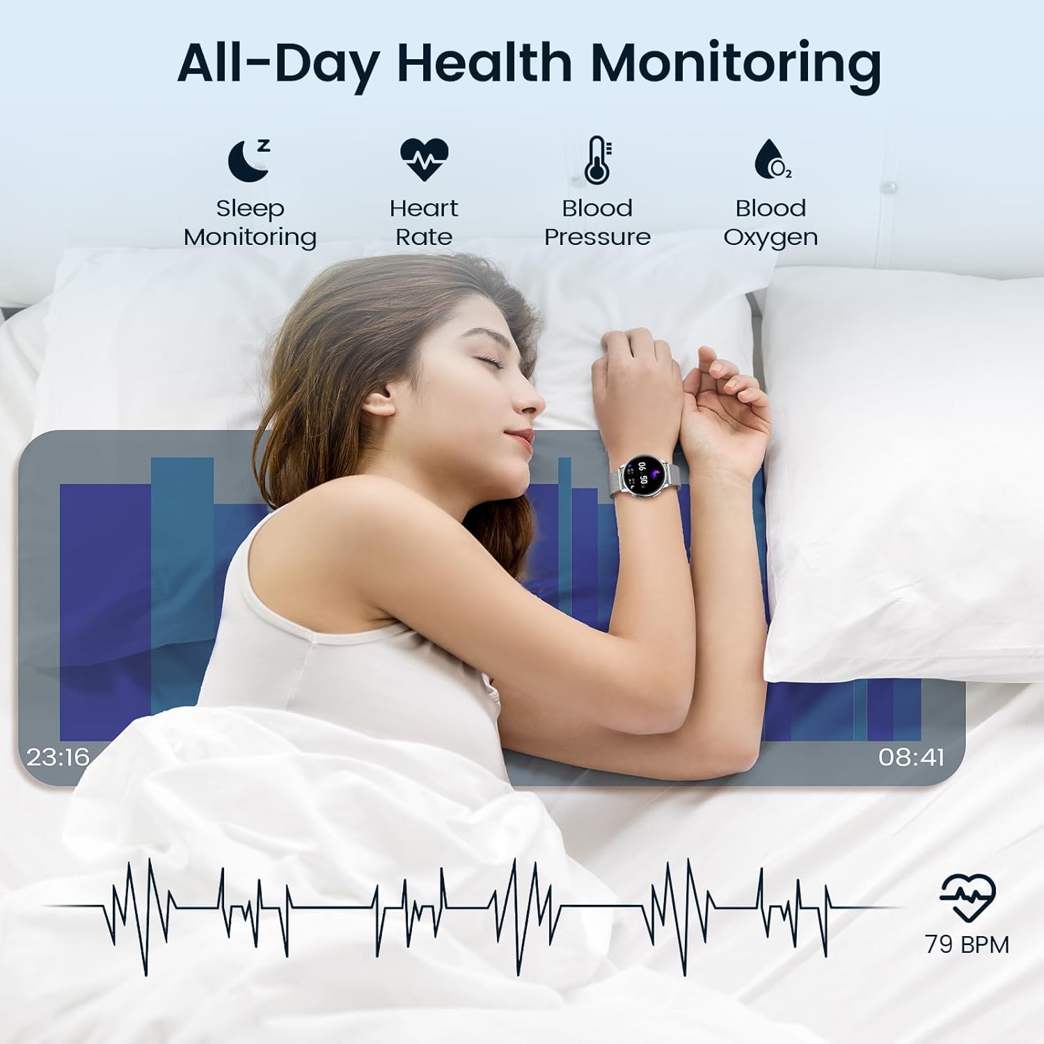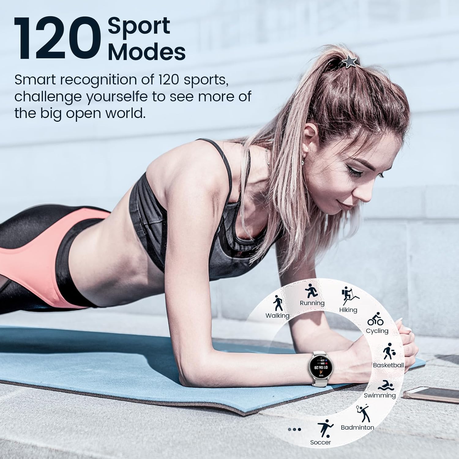 2: 24/7 heart rate monitor & blood oxygen: With high performance LC11 sensor and genuine VC32 blood oxygen sensor. In addition to monitoring real-time heart rate on the smartwatch, it can also accurately monitor blood oxygen. You can also display the data visually in the "FitCloudPro" app, which allows you to better know your physical condition and help you lead a healthier lifestyle.