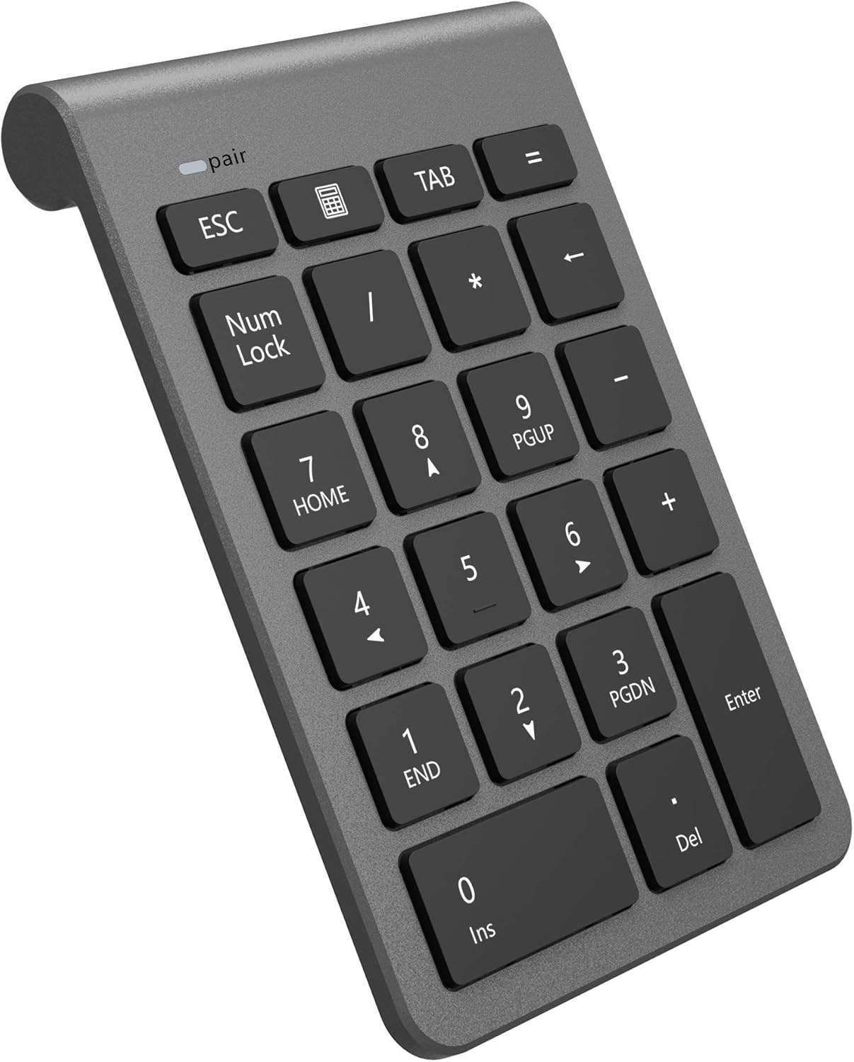 Тази Bluetooth цифрова клавиатура има 22 клавиша с няколко полезни комбинации от клавиши, включително NUMLOCK, ESC, Delete, End, Tab, Home, Page Up/Down, бутон за експортиране на калкулатор и др. Многофункционалната 22-клавишна безжична външна цифрова клавиатура за лаптоп е по-уникална от повечето клавиатури. Отговаря на всички изисквания, които поставяте към цифрова клавиатура.