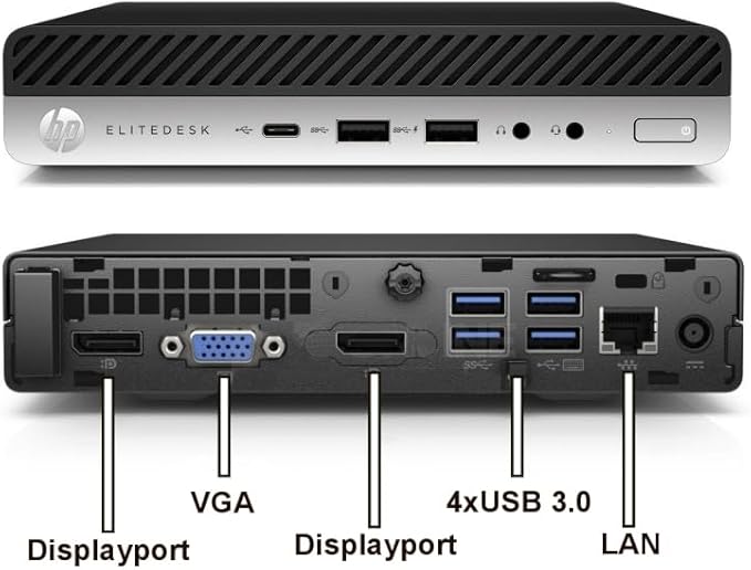 Кутия: HP Mini PC (18x18x3.5 см), подвижен страничен панел, цвят черен