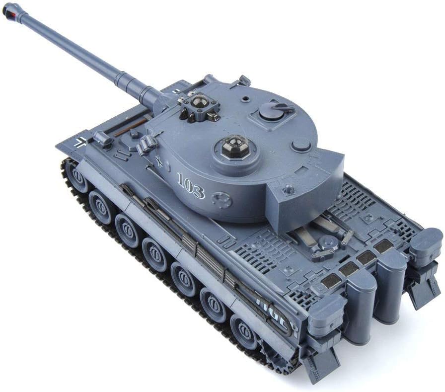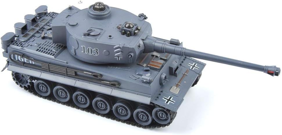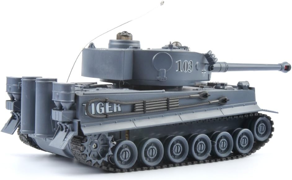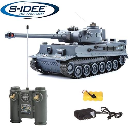 s-idee® 22002 Боен танк 99807 Немски Тигър 1:28 с вградена инфрачервена бойна система 2.4 GHz RC R/C Дистанционно управляем танк Гъсенична машина IR функция за стрелба Звукова светлина
