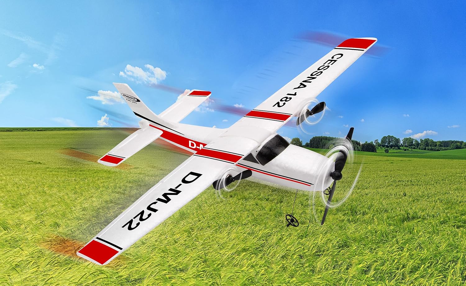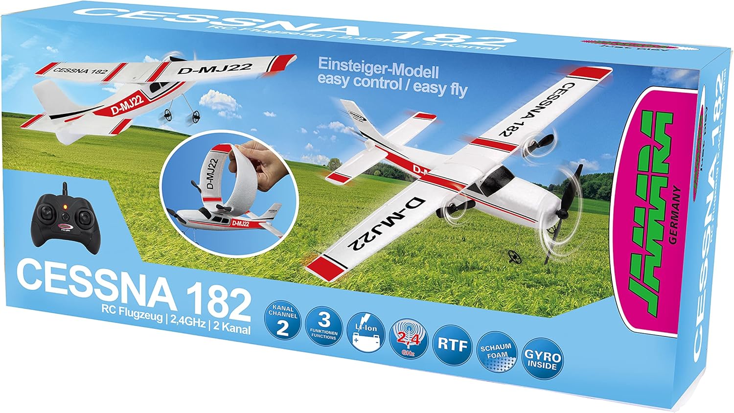 Самолет JAMARA Cessna 182 2.4GHz жироскоп 2 канала - дистанционно управляван, подходящ за начинаещи, стабилизиране на полетните характеристики, много добри свойства за самоуправление, изработен от гъвкава микропяна
