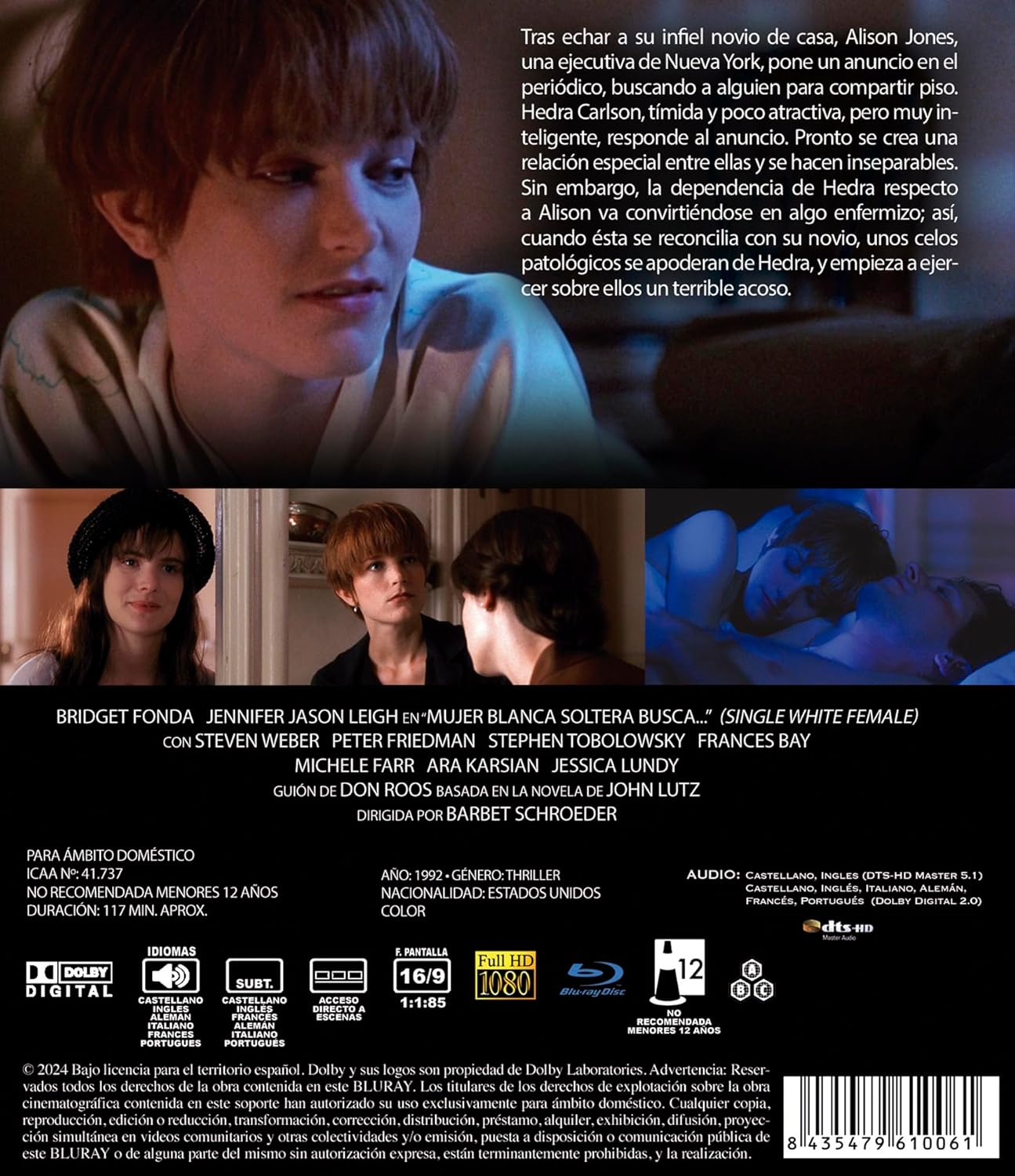 Резюме След като изгонва невярната си приятелка от дома, Алисън Джоунс, изпълнителна директорка в Ню Йорк, пуска обява във вестник, за да търси някой, с когото да споделят апартамент. Хедра Карлсън, срамежлива и непривлекателна, но много интелигентна, откликва на обявата. Скоро между тях възниква специална връзка и те стават неразделни. Зависимостта на Хедра от Алисън обаче се разболява. Така че, когато тя се сдобрява с приятелката си, патологичната ревност я завладява и започва да я тормози ужасно. Езици: испански (DTS-HD Master 5.1), испански (DTS-HD Master 5.1), испански (Dolby Digital 2.0), английски (DTS-HD Master 5.1), английски (Dolby Digital 2.0), италиански (Dolby Digital 2.0), немски (Dolby Digital 2.0), френски (Dolby Digital 2.0), португалски (Dolby Digital 2.0), португалски (Dolby Digital 2.0). .0), субтитри: испански, английски, френски, немски, италиански, португалски
