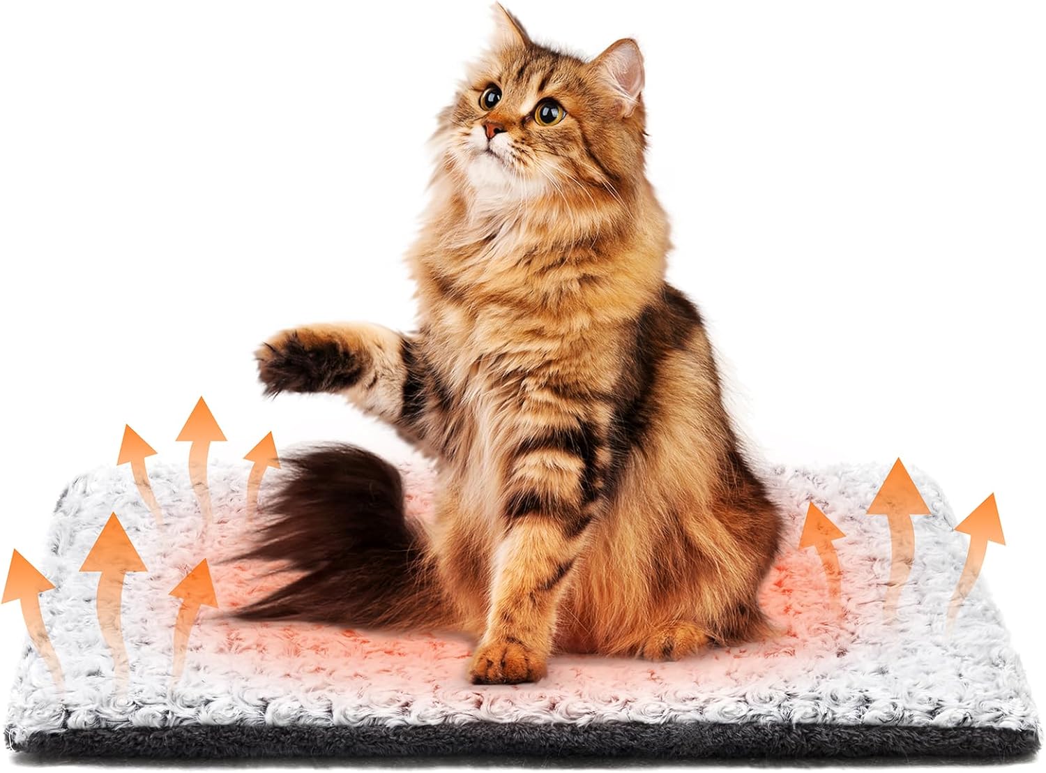 • УЮТНИ МАТЕРИАЛИ Удебелената самозагряваща се подложка за домашни любимци е изработена от розов кадифе и арктически полар и се отличава с дълги, плюшени влакна, които ефективно задържат топлината. Този ултра-уютен дизайн я прави идеалното място, където вашият домашен любимец да се сгуши и да се наслади на топлината. Одеяло за котка - самозагряващо се одеяло за котка. Облекчава болката, свързана с артрит, и осигурява допълнителна топлина на породи без козина.