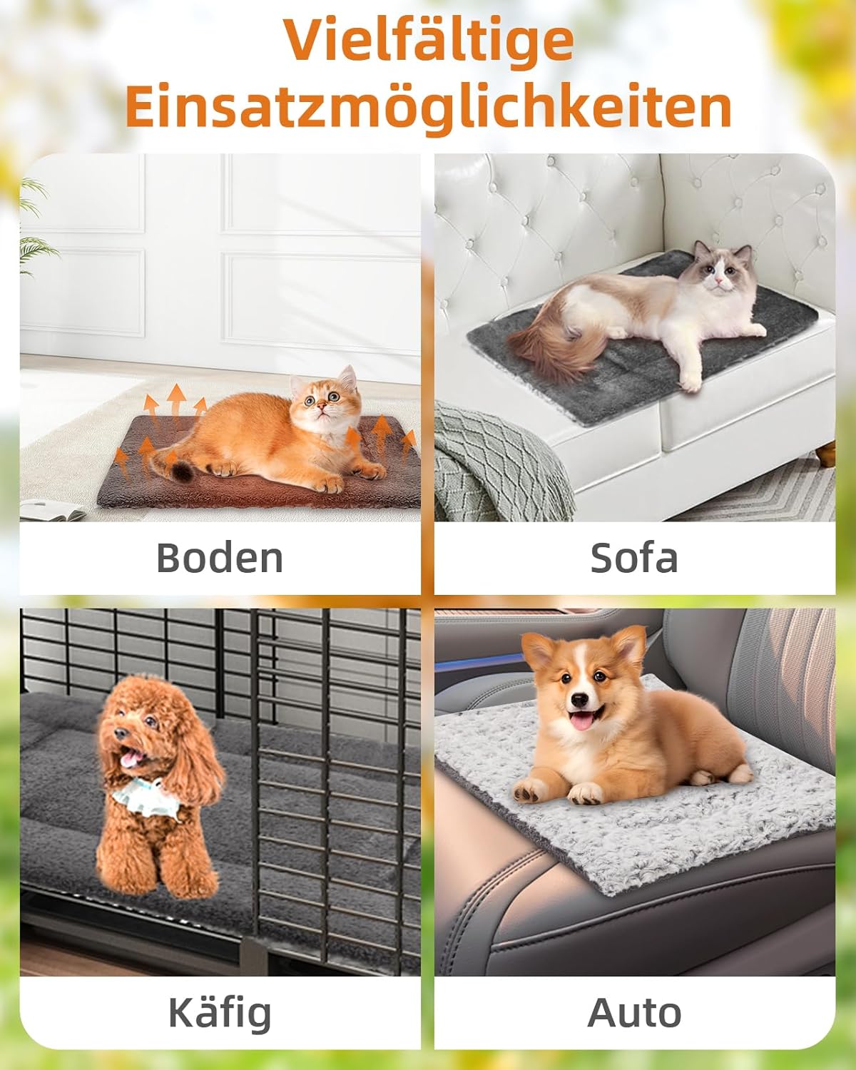 • МНОГОКРАТНА УПОТРЕБА Електрическото одеяло за котки е многофункционално и може да се използва върху дивани, подове, легла за домашни любимци и външни котешки къщички. Самозагряващо се одеяло за котки и кучета. Добавя допълнителен уют и мекота към всяка стая, което го прави идеалното място за убежище за вашите пухкави приятели, независимо дали на закрито или на открито.