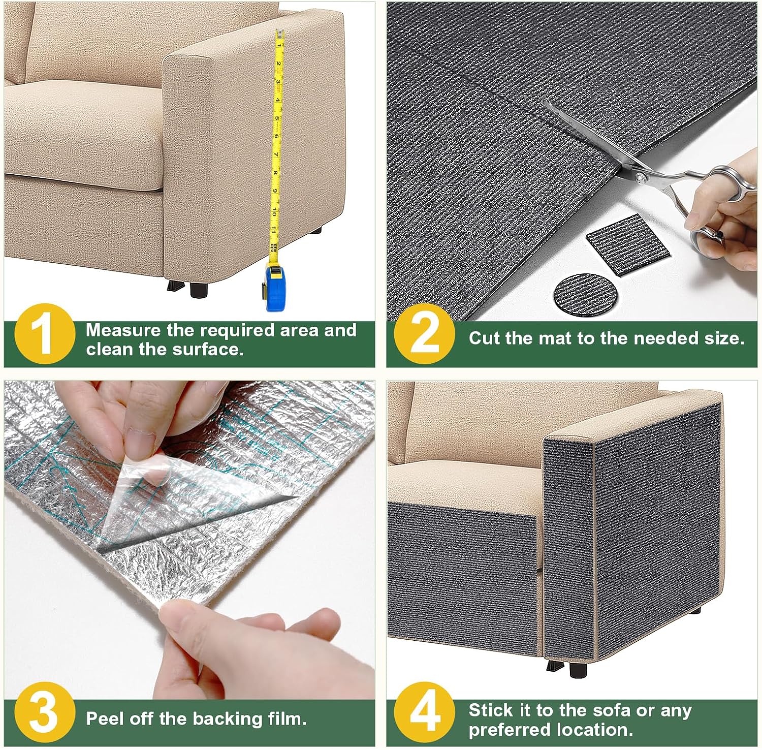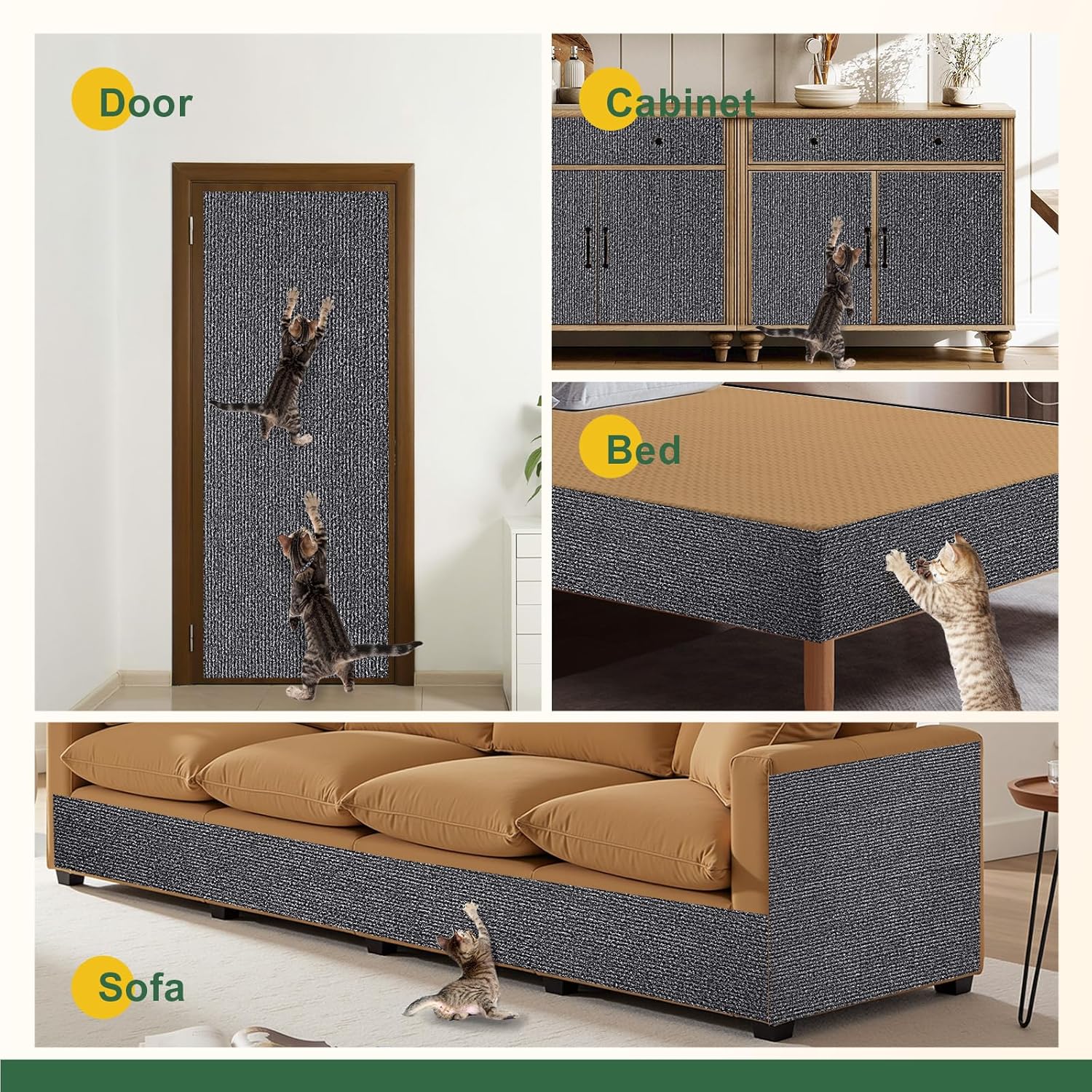 • Защита от надраскване за диван-котка: с нашата защитна повърхност за диван-котка можете ефективно да отвлечете вниманието на котката си от мебелите. Можете да я прикрепите към мебели, стени, врати, прозорци или към драскалките и кулите за драскане, които искате да защитите. Осигурете на котката си специална повърхност за драскане.