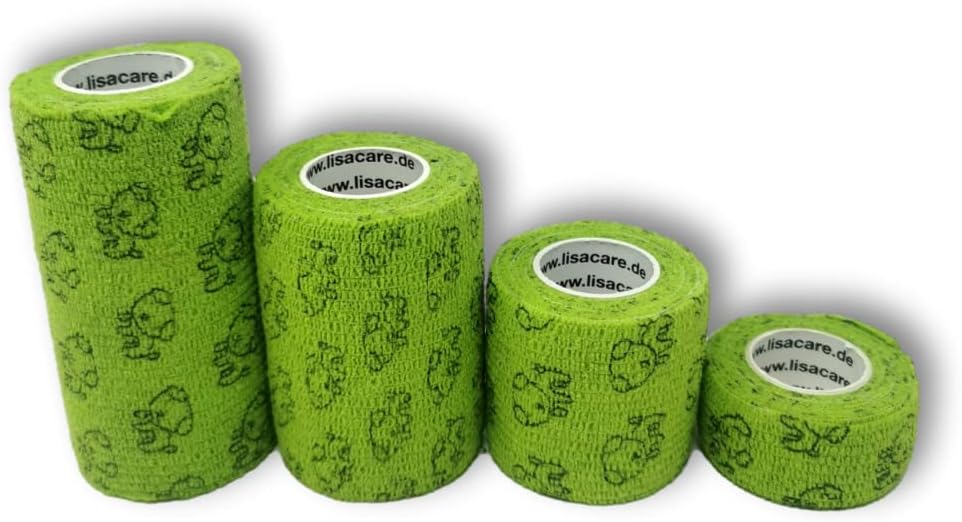 Самозалепваща се превръзка за кучета LisaCare - Превръзка за кучета - Лепенка за кучета - Пластири за животни, пакет от 4, ширина 2,5-10 см (зелена превръзка за кучета)