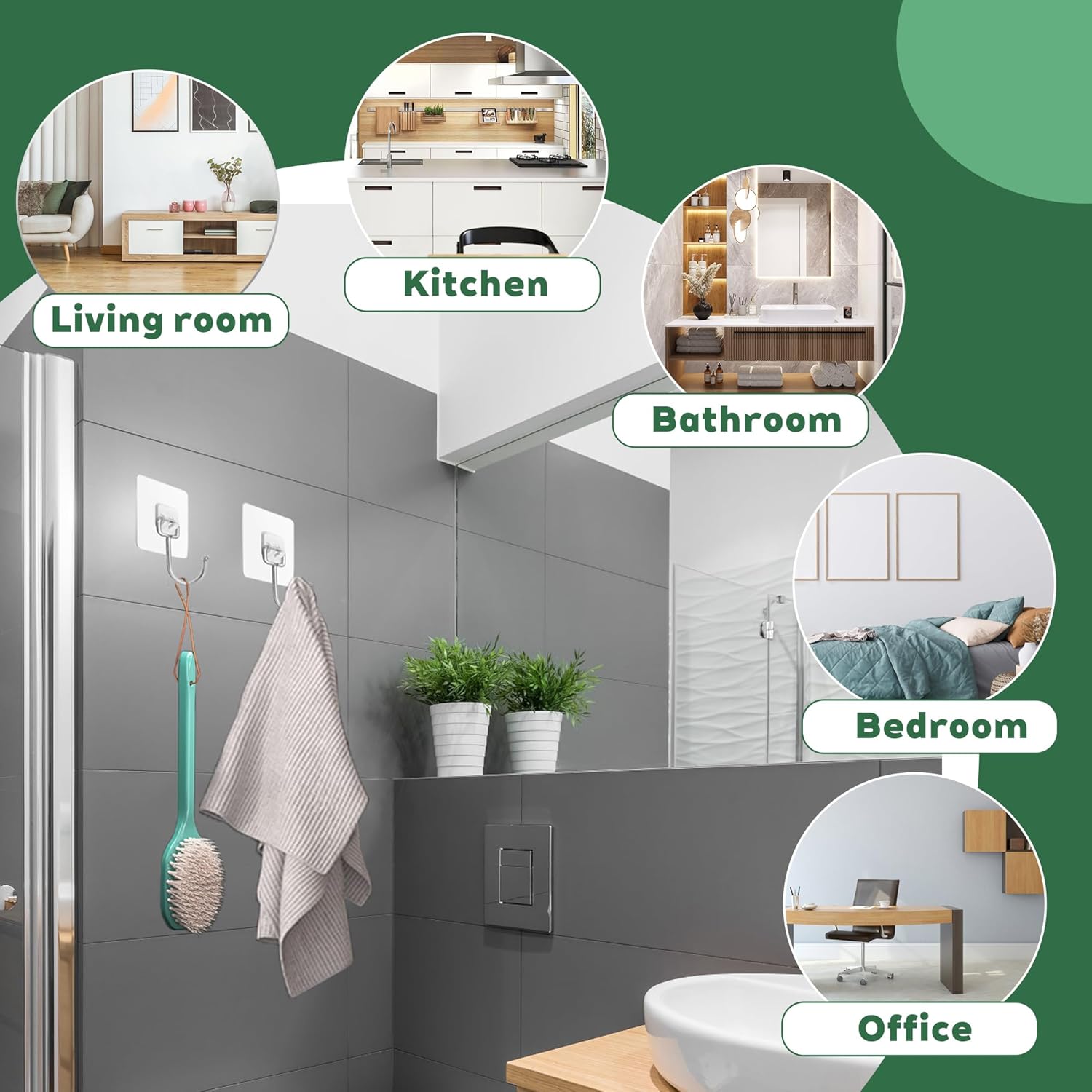 • Многофункционални куки за съхранение в дома: тези самозалепващи се кухненски куки са идеални за окачване на кухненски съдове, ключове, палта, шапки, кърпи, коледни лампички, коледни венци и други. Могат да се използват и като кука за баня за окачване на кърпи, халати, четки за тяло и др. в банята.
